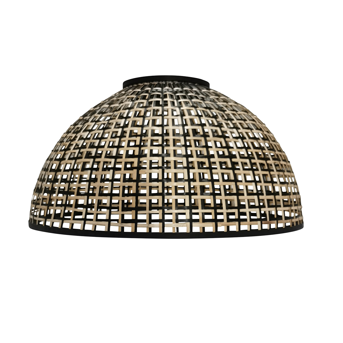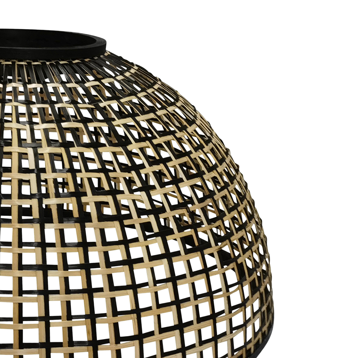 Deze gevlochten lampenkap van bamboe zorgt voor een warme en natuurlijke uitstraling in het interieur. Het open vlechtwerk laat het licht op een speelse manier door en creëert een sfeervol lichtbeeld op wanden en plafond. De ronde vorm en het gebruik van natuurlijke materialen maken deze kap een mooie keuze voor een bohemian, Scandinavische of natuurlijke woonstijl.