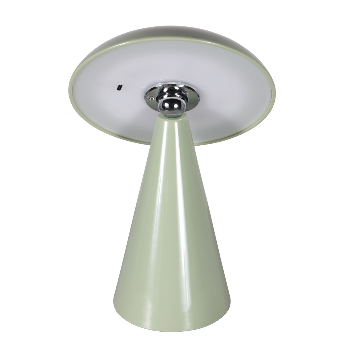 Dit oplaadbare tafellampje in paddenstoelvorm in een zachte groene tint is een speelse en stijlvolle toevoeging aan elk interieur. Door het compacte formaat is de lamp ideaal voor een nachtkastje, bijzettafel of dressoir. De kantelbare kap maakt het mogelijk het licht gericht te gebruiken voor sfeer of functionele verlichting.