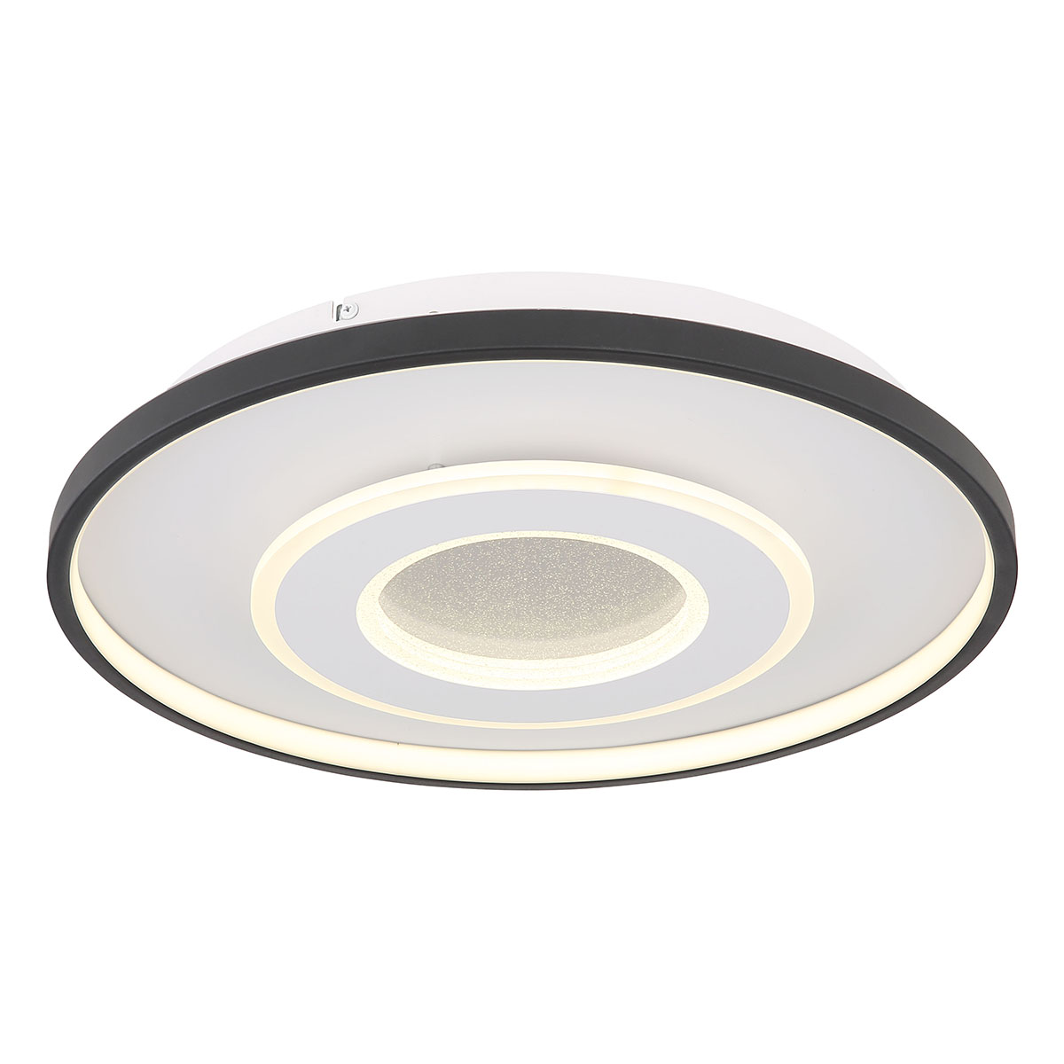 Betover uw interieur met deze uitzonderlijke plafondlamp, die een fascinerend kristalzandeffect en een aantrekkelijk rond ontwerp (Ø 48 cm) combineert. Deze lamp kan traploos geschakeld worden tussen een sfeervolle warmwitte lichtkleur (2700 Kelvin) naar een verhelderend koudwit (6000 Kelvin) met de bijgeleverde afstandsbediening. De lamp is tevens uitgerust met een speciale nachtlichtfunctie die zorgt voor een zachte atmosfeer. Bovendien bevat het een handige geheugenfunctie, waardoor uw laatst gekozen instelling wordt bewaard, zelfs na het uitschakelen van de lamp.