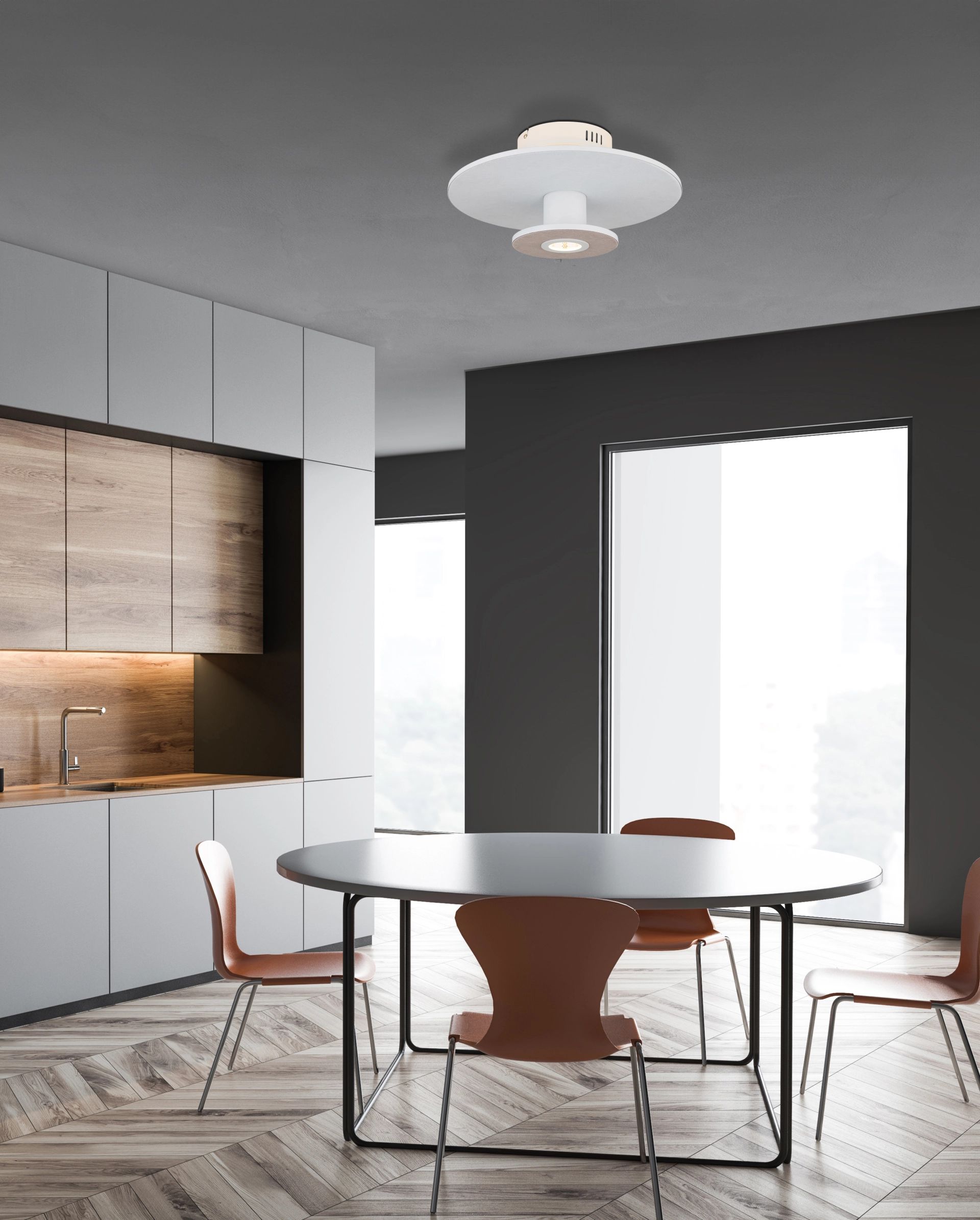 De plafondlamp Carter Metal White is de ideale keuze voor zij die stijl en functionaliteit willen combineren in een elegante setting. Met een modern en innovatief ontwerp voegt deze lamp een vleugje sophistication toe aan elk interieur. De ronde vorm en vlakke schijven, bekleed met vilt, zorgen voor een opvallend accent. Het metalen frame in witte matlak en de bijpassende aluminium kap stralen een eigentijdse en tijdloze uitstraling uit. De textiele bekleding in lichtgrijs en beige biedt een warm contrast, waardoor de lamp veelzijdig te stylen is.
