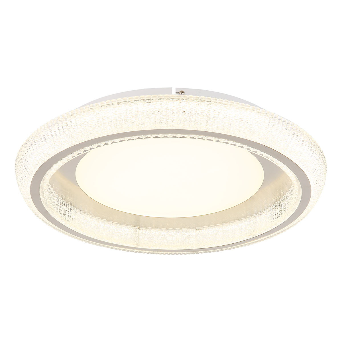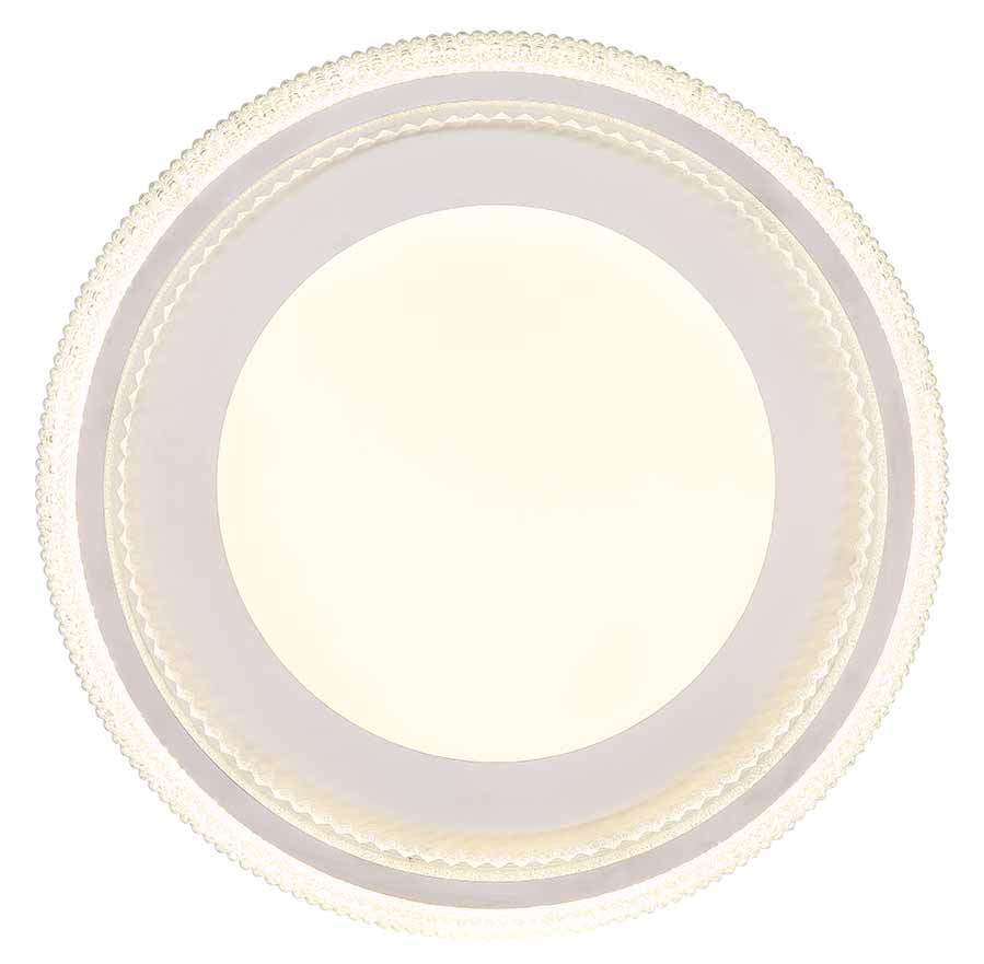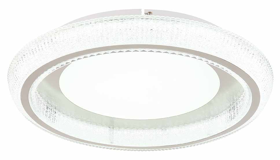 Een statement in verlichting, deze sfeervolle plafondlamp combineert het strakke, moderne design van mat wit metaal met de schittering van heldere acrylkristallen. Een comfortabele geheugenfunctie slaat je laatst gekozen helderheidsinstelling op, die varieert van een knusse 2700K tot een heldere 6000K temperatuur. Met een krachtige lichtopbrengst van 2800 lumen vanaf zijn imposante 500mm frame, daagt deze lamp uit om genegeerd te worden. De energie-efficiëntie en de rand in mat nikkel maken deze lamp tot een glamoureuze maar toch praktische aanvulling op elke kamer.