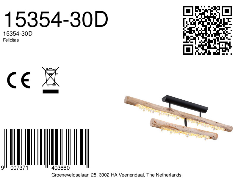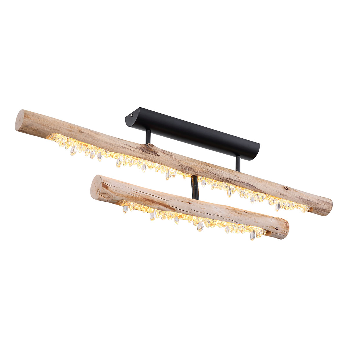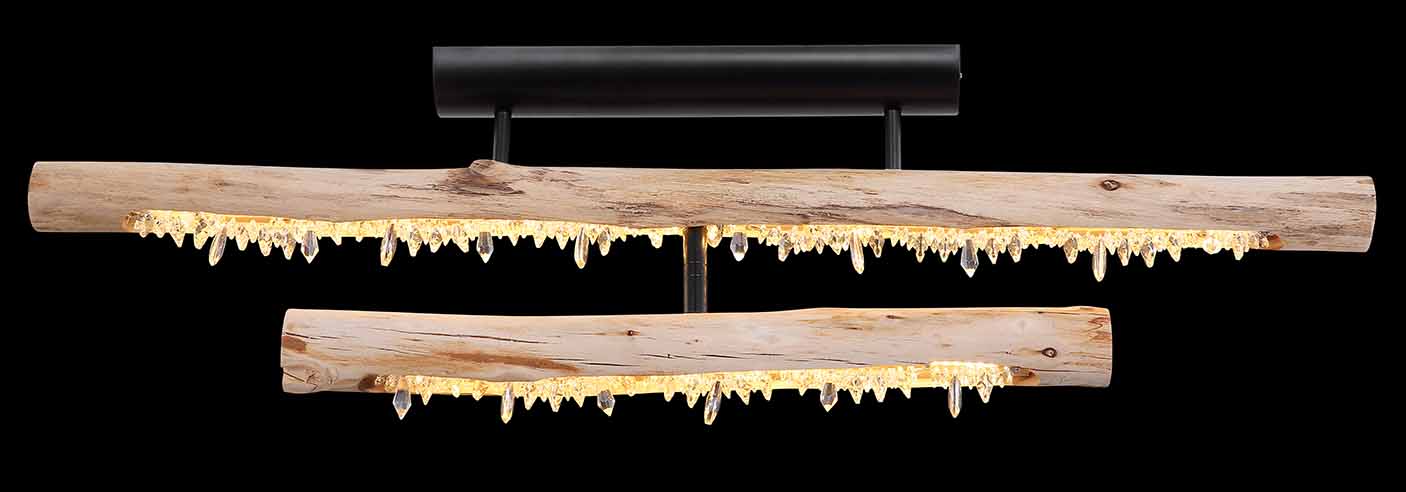 Deze plafondlamp combineert moderne en klassieke stijlen. Heldere acrylkristallen aan de houten balk zorgen voor een blikvanger in uw kamer. De meegeleverde 30 watt LED-lamp levert tot 1350 lumen licht met een warme 3000 Kelvin lichtkleur. De lichtkleur kan in drie fasen worden ingesteld via de wandschakelaar. Ideaal voor uw woon- en eetkamer.