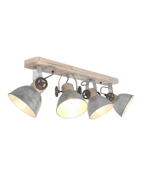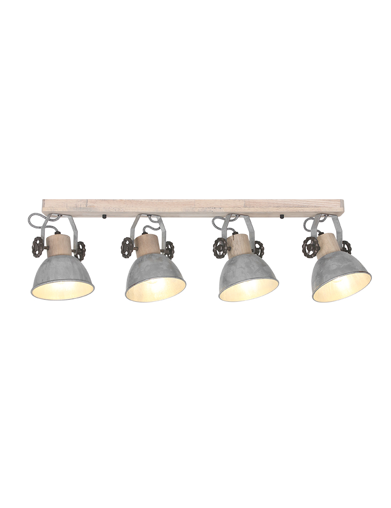 Leuke spots voor een industrieel of landelijk interieur? “Gearwood” van Mexlite slaat de spijker… “Gear” is Engels voor tandwiel en “wood” betekent hout. En dat is exact wat deze vierlichtsplafondspot heeft. Een houten plafondplaat waarop vier nikkelkleurige spots zitten. De fittinghouders zijn van hout en leuke tandwielen zitten aan de kantelmechanismes. Deze leuke spots worden dé blikvanger in jouw kamer!