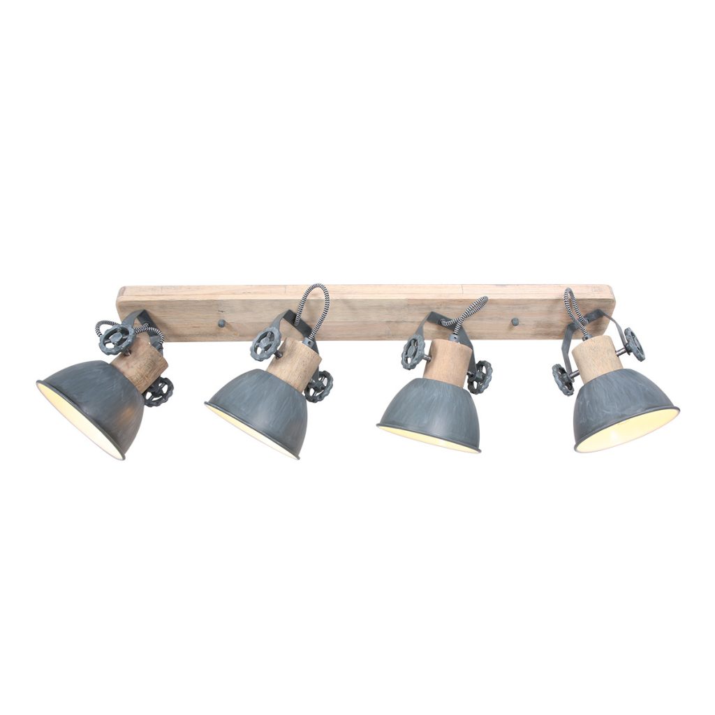 De Gearwood 4-lichts plafondspot van Mexlite combineert een robuust design met flexibiliteit. De vier spots zijn draaibaar en kantelbaar dankzij de verstelwielen en hebben een E27-fitting, geschikt voor lichtbronnen tot 40 Watt. De totale lengte van de spot is 90 cm en de kappen hebben een diameter van 15 cm. Dimbaar met een externe dimmer en een geschikte lichtbron.