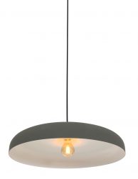 De grijze hanglamp uit de Krisip-serie heeft een tijdloos design met een brede schotelvormige kap van 55 cm in diameter. De lamp hangt aan een zwart strijkijzersnoer en is verstelbaar in hoogte tussen 40 en 170 cm. Uitgerust met een E27-fitting en geschikt voor lichtbronnen tot maximaal 60 Watt (niet inbegrepen). De lamp is dimbaar met een externe dimmer voor een sfeervolle lichtregeling.