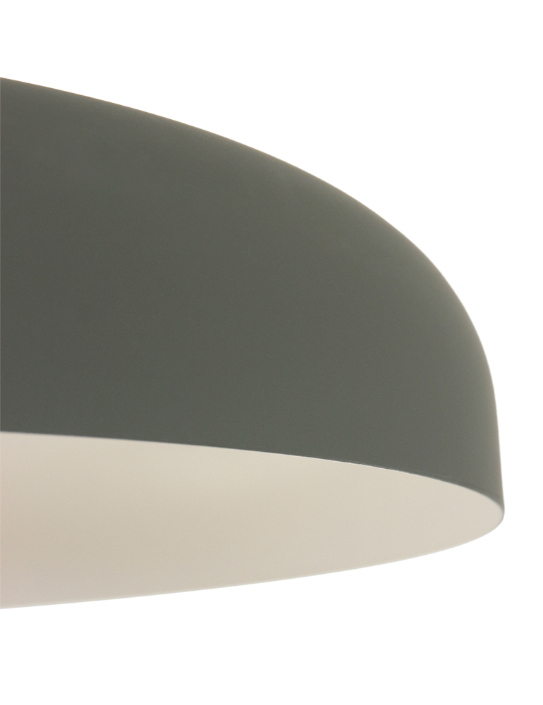 Aangenaam voor de ogen door de organische lijnen in mat grijs metaal. Hanglamp Krisip heeft een wijde uitnodigende schotelvorm. Prachtig gewelfd is daarboven de verbinding met het strakke zwarte snoer. De witte binnenkant zorgt voor optimaal gebruik van het uitwendig dimbare licht. De zachte vorm contrasteert mooi met de stoere betonkleur en past in een landelijke, moderne en industriële omgeving.