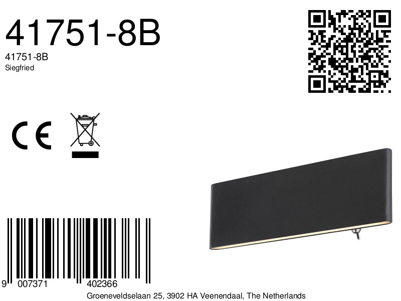 De Siegfried wandlamp verenigt functionaliteit met een eigentijds design. Deze lamp, zorgvuldig vervaardigd uit zwart aluminium en acryl, heeft een lengte van 22,5 cm en biedt een breed scala aan toepassingen. Een ingebouwde LED-lamp van standaard formaat produceert een krachtige lichtopbrengst van 240 lumen, in een warm witte kleurtemperatuur van 3000K. Wanneer de lamp naar boven en naar beneden straalt, creëert het een gastvrije en knusse sfeer in elke woonruimte.