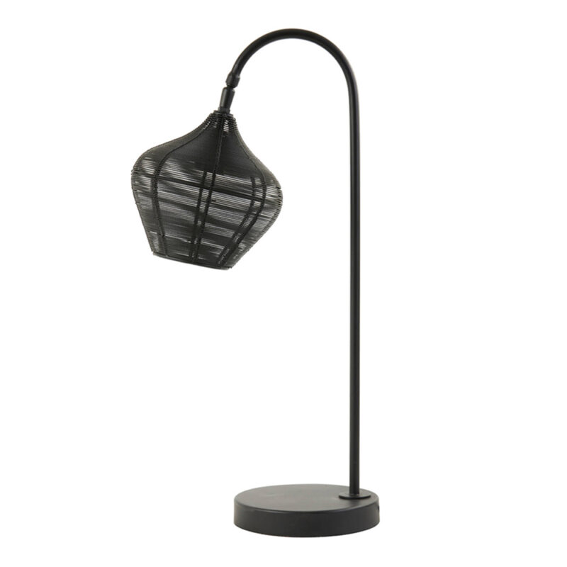 Wat een leuke lamp heb je! Dat zal je vaak horen over de “Alvaro” van Light&Living. Deze zwarte tafellamp heeft een ronde voet waarop een staander met gebogen hals staat. Aan deze hals hangt een kap van open draadmetaal. Deze ruimtelijke kap heeft de vorm van een bolle wijnkaraf. Over wijn gesproken, een wijntje drinken is voortaan een stuk gezelliger!