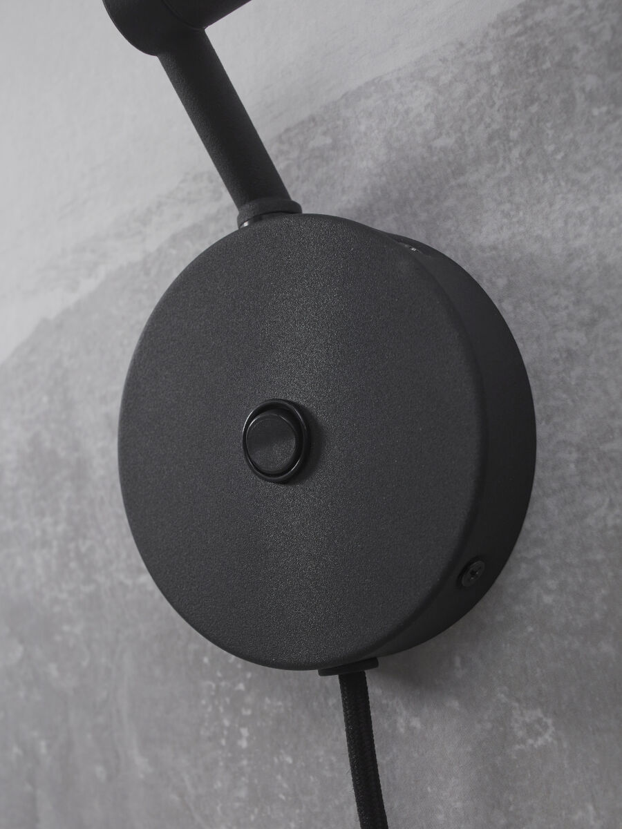 Zwarte metalen wandlamp in retro stijl, It’s About RoMi Montreux. Deze lamp past perfect in een vintage interieur, geschikt voor eetkamer, slaapkamer of woonkamer. Werkt met GU10 fitting en is stofdicht (IP20). Exclusief lichtbron. Voor een klassieke en stijlvolle touch.