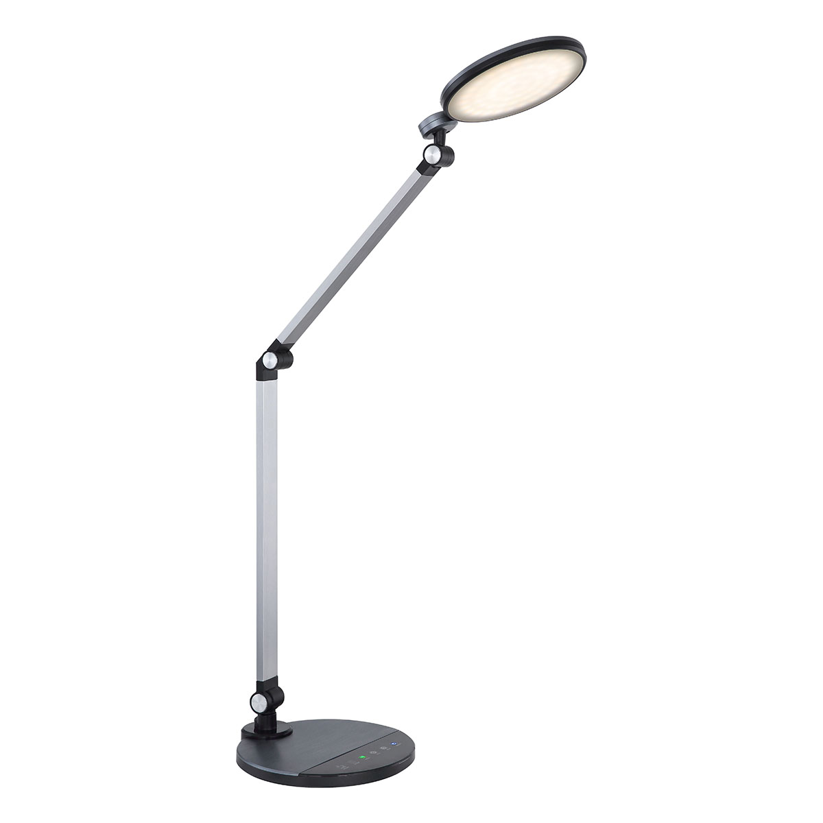 De Konsti tafellamp is een stijlvolle aanwinst voor jouw werkruimte, samengesteld uit twee verfijnde draaistangen van geborsteld aluminium, bevestigd aan een stabiele basis van hetzelfde materiaal. De dualiteit van functie en esthetiek komt aan het licht door de unieke, kogelvormige LED-lamphouder, slim verborgen in een zwart satijn plastic omhulsel, dat een intensiteit van 605 lumen uitstraalt. Deze verlichting kan volledig naar eigen wens worden aangepast met de bijgeleverde aanraakdimmer, die jou de mogelijkheid biedt om de lichtsterkte en de kleurtemperatuur (variërend van warm wit 3000 Kelvin tot koel wit 6300 Kelvin) te reguleren. Verrijk je interieur met deze en andere producten uit de Konsti-reeks om een coherent en modieus design te bevorderen.