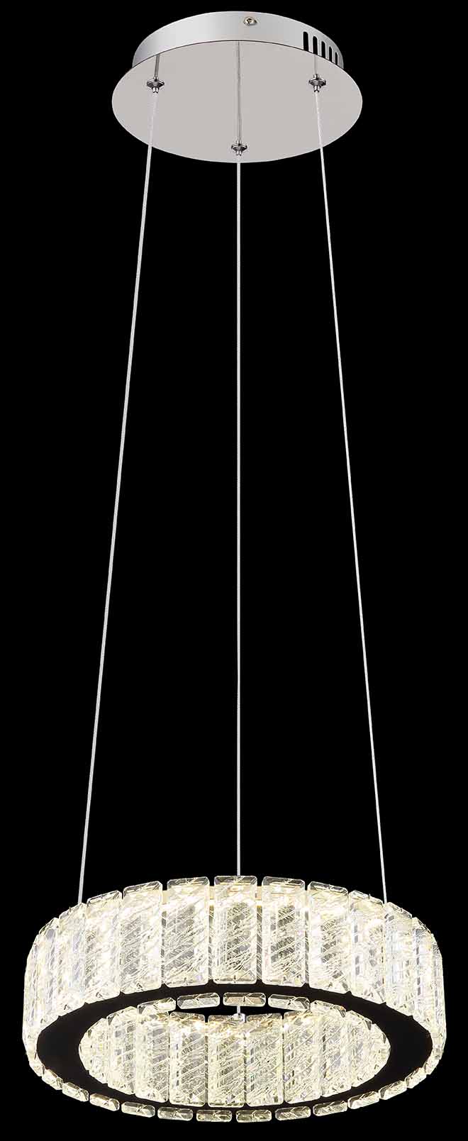 Betreed een wereld van sprankeling en verfijning met onze unieke hanglamp, die zorgvuldig is vervaardigd uit glanzend chroom en schitterende K5 kristallen. De bediening is moeiteloos, met een dimbare lichtfunctie en geheugeninstellingen die via een meegeleverde afstandsbediening kunnen worden bediend. Deze luxueuze verlichtingsbron, met een diameter van 30cm, beschikt over een instelbare kleurtemperatuur tussen 2700K en 6000K, en biedt een behaaglijk nachtlampje. Deze elegante hanglamp, die wordt gevoed door een 30W LED, transformeert elke woonruimte in een verbluffend visueel hoogtepunt.