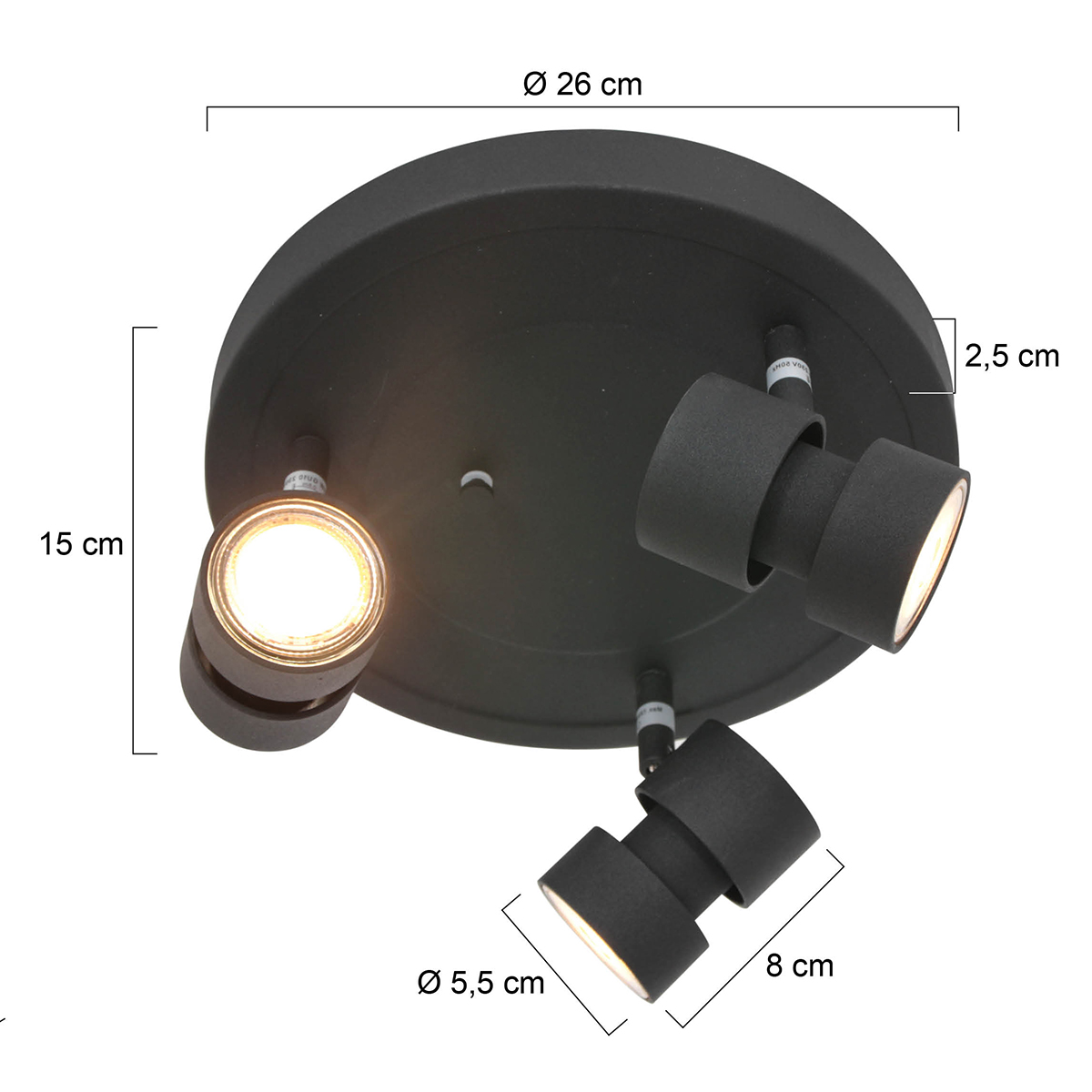 De moderne zwarte 3-lichts plafondspot Natasja van Steinhauer combineert een strak ontwerp met functionele verlichting. Dankzij de verstelbare spotkoppen kan het licht eenvoudig worden aangepast. De GU10 lichtbronnen met dim-to-warm functie bieden sfeervolle verlichting, met een lichtopbrengst tot 480 lumen en een instelbare kleurtemperatuur tussen 2200 en 2700 Kelvin.