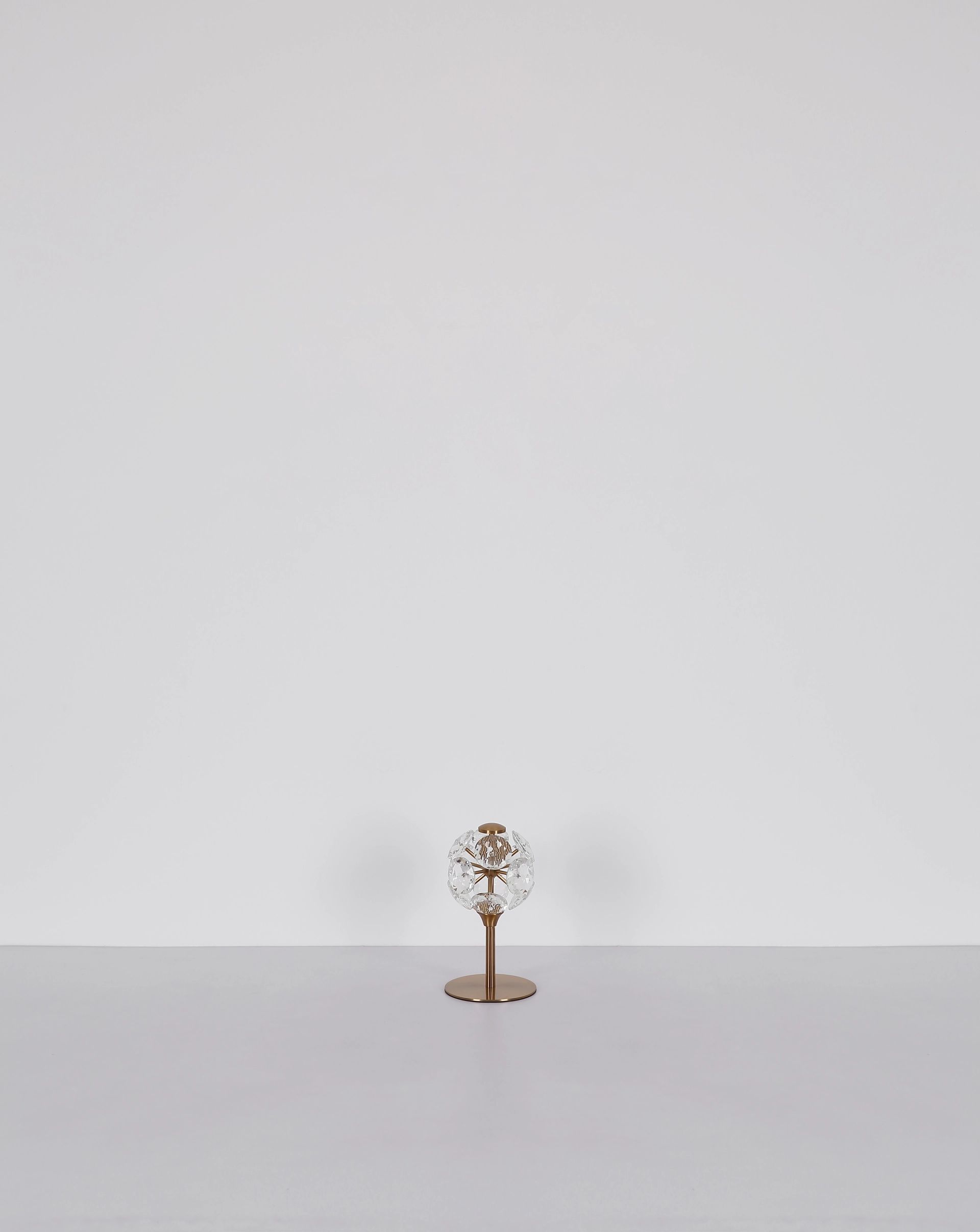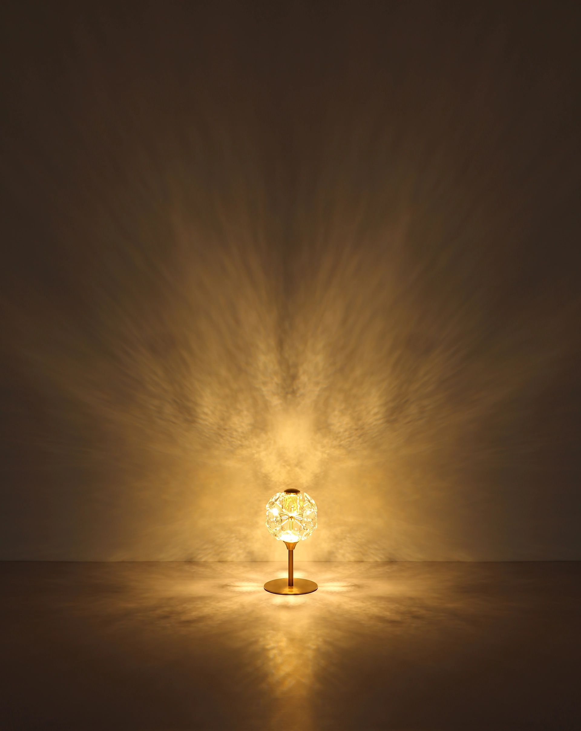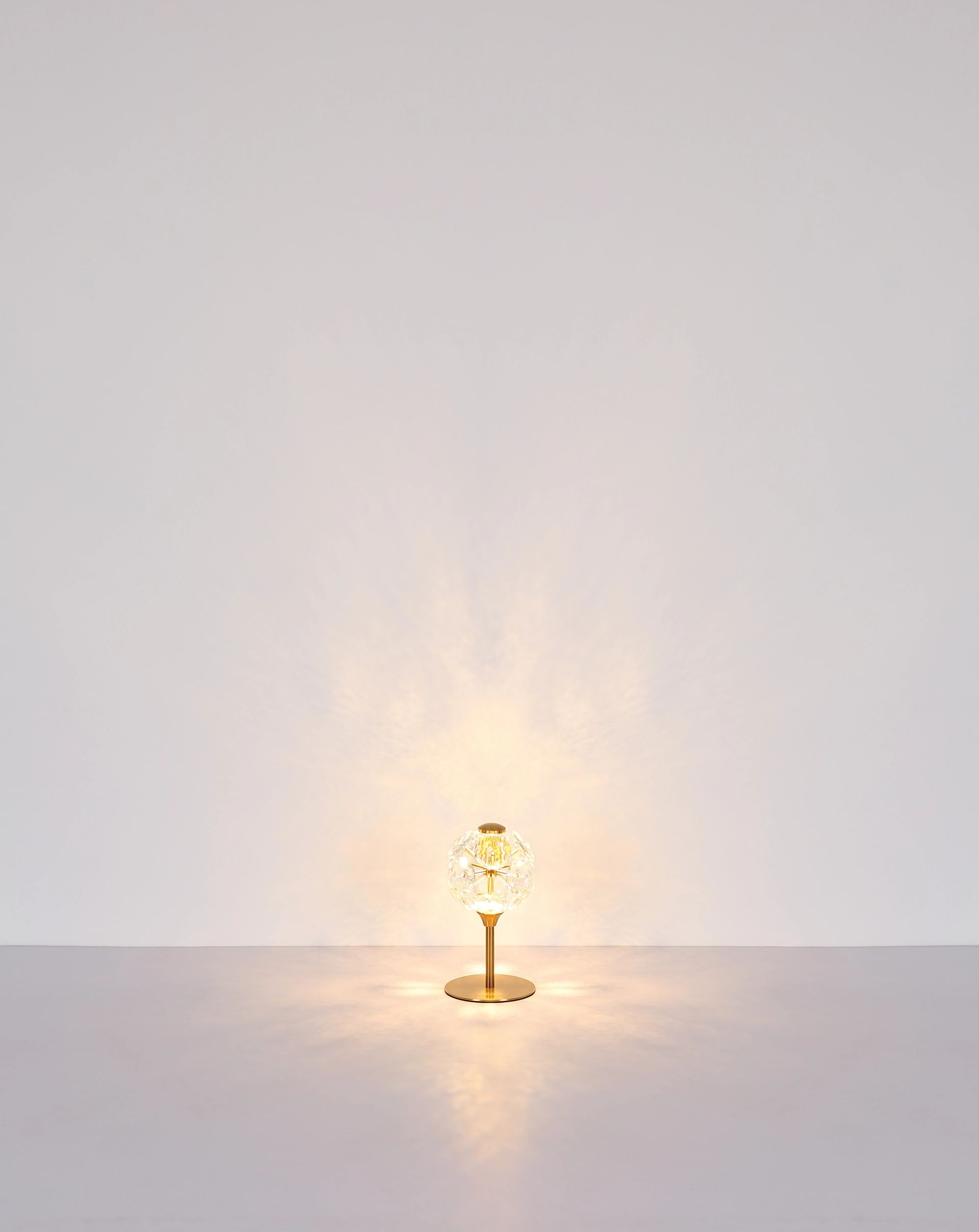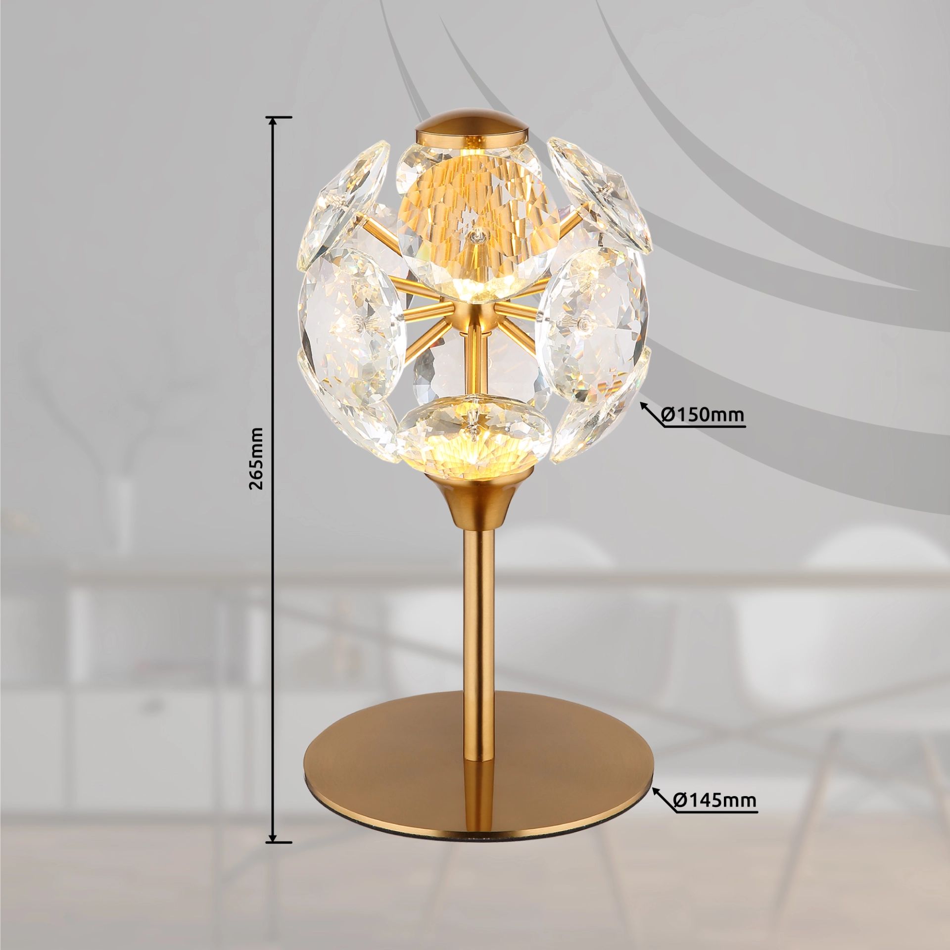 Ronde tafellamp met gouden metaal en kristallen Virina