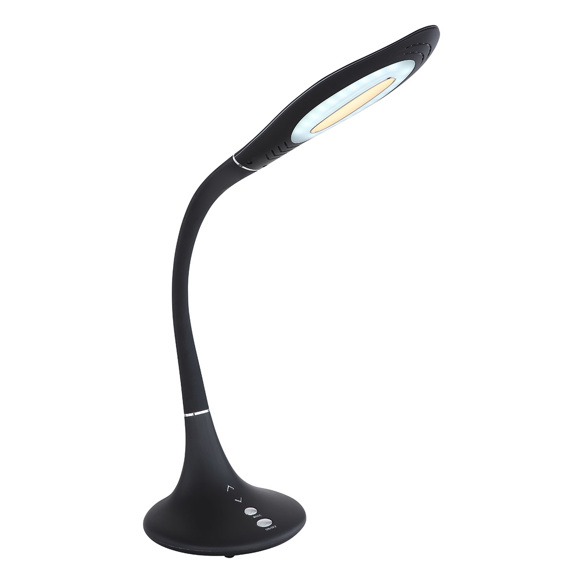 De Pattaya tafellamp is een elegante toevoeging aan elke interieurstijl, dankzij zijn minimalistische design. Ze is samengesteld uit twee zwarte metalen delen, verbonden door een flexibele kunststof schakel. Het bovendeel van deze 70 cm lamp is afgedekt met plastic die de meegeleverde LED-lampen omhult, stralende tot 620 lumen licht. Met de ingebouwde touch dimmer kunt u eenvoudig de helderheid regelen en het licht trapsgewijze aanpassen van warm wit tot koud wit (3300, 4500 en 6500 Kelvin). De Pattaya tafellamp biedt zowel functionaliteit als stijl, voor een harmonieuze aanvulling op uw leefruimte.