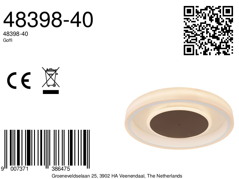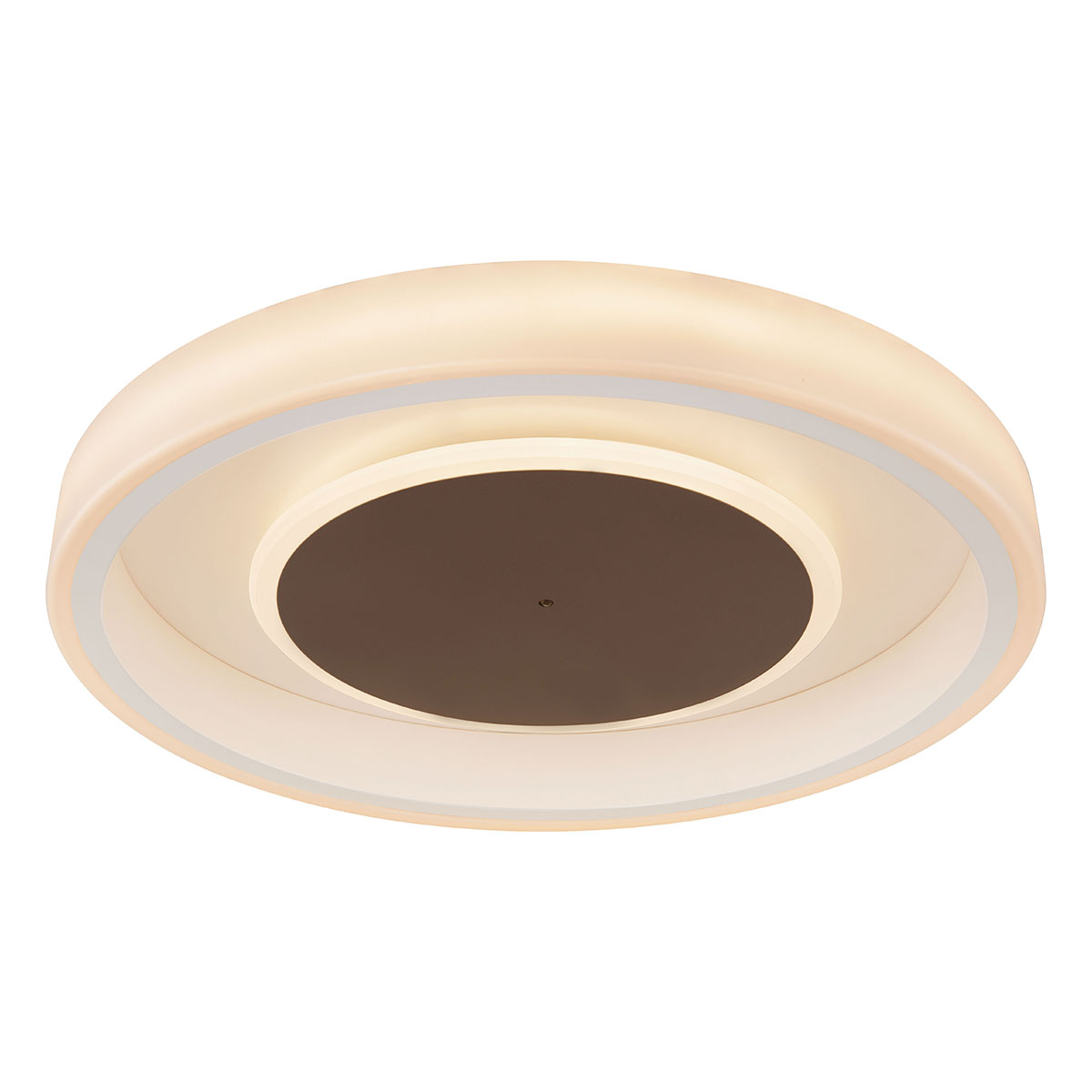 Ontworpen voor zowel stijl als functionaliteit, de GOFFI ronde plafondlamp (Ø50cm) is prachtig vervaardigd met wit en bruin metaal rond een opalen acrylglas centrum. Deze sfeervolle binnenlamp komt met een 40 watt LED-lamp en produceert een krachtige lichtopbrengst van maximaal 2400 lumen. Een eenvoudige draadloze afstandsbediening maakt een soepele aanpassing van de lichttemperatuur mogelijk, variërend van een knusse warmwitte 3000 Kelvin tot een heldere 6000 Kelvin. Extra functies zoals een geheugenstand en nachtlichtoptie verhogen het gebruiksgemak van deze dimbare armatuur. Het tijdloze ontwerp stelt u in staat deze naadloos te integreren in elke slaapkamer, gang of woonruimte, en geeft u de mogelijkheid om met andere lampen uit deze serie een harmonieus verlichtingsconcept te creëren.