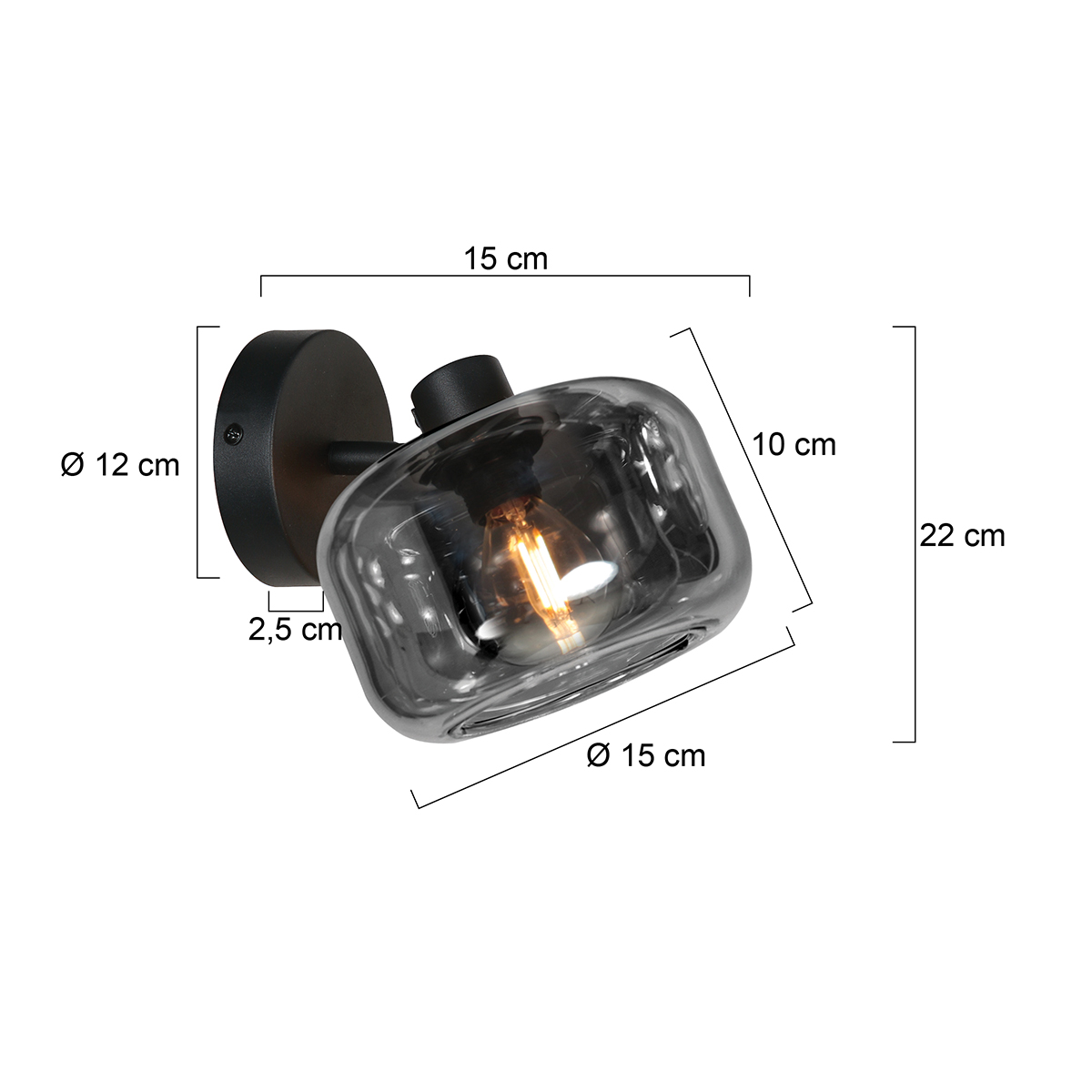 De Tenebris 1-lichts spot is een elegante combinatie van modern design en sfeervolle verlichting. De zwarte behuizing en rookglazen kap geven deze plafond- of wandspot een luxe uitstraling. Dankzij de E14 fitting kies je zelf de gewenste lichtbron, zodat je de sfeer in de ruimte naar wens kunt aanpassen.