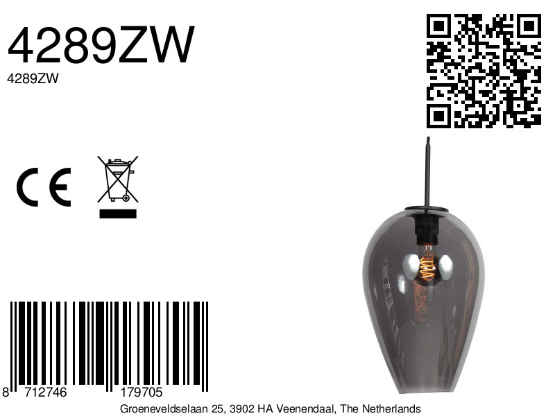 Deze zwarte hanglamp wordt geleverd met een elegante druppelvormige kap van smoke kleurig glas, met een diameter van 22,5 cm en een hoogte van 33 cm. Het licht getinte glas verspreidt het licht op een zachte, warme manier en voegt direct sfeer toe aan je interieur. Ideaal als stijlvolle blikvanger boven een eettafel, kookeiland of bar.