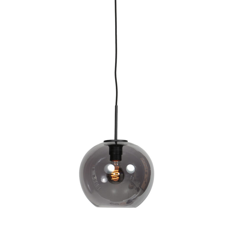 Deze zwarte hanglamp is voorzien van een bolvormige glazen kap in smoke kleur met een diameter van 25 cm en een hoogte van 22 cm. Het getinte glas verspreidt het licht op een zachte, warme manier en zorgt direct voor een gezellige sfeer. Ideaal voor boven een eettafel, kookeiland of in de keuken, waar sfeervolle verlichting het verschil maakt.