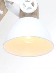 De Scandinavische witte plafond- of wandspot Gearwood van Mexlite combineert een strakke uitstraling met warme houten accenten. Deze draaibare en kantelbare spot is voorzien van grote verstelwielen, waardoor je de lichtinval eenvoudig kunt aanpassen. Voorzien van een E27 fitting, geschikt voor lichtbronnen tot 40 Watt. De kap heeft een diameter van 15 cm en een totale hoogte van 19 cm. Dimbaar met een externe dimmer.