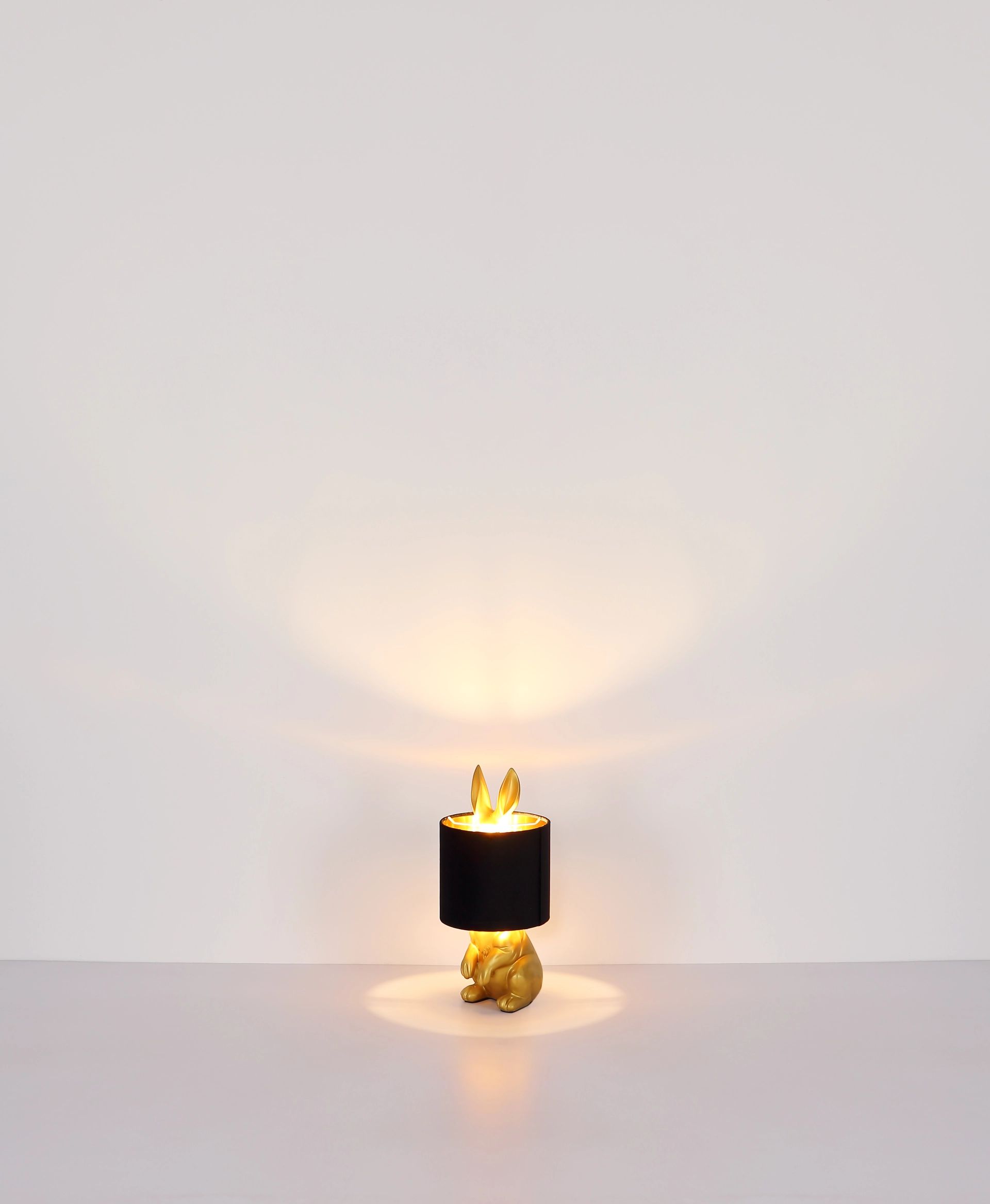 Speelse gouden konijn tafellamp met zwarte kap Rabbit