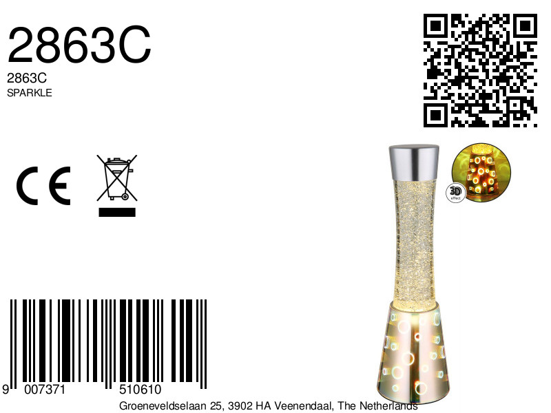 Sprankelende tafellamp met 3d-effect en glitter Sparkle