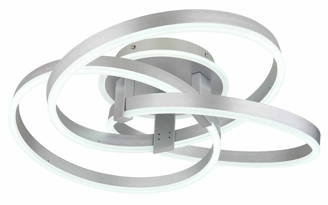 Met zijn verfijnde design transformeert de Globo Lighting plafondlamp elke ruimte in uw huis. Vervaardigd uit een luxe mix van geborsteld aluminium, matgrijs metaal en opaal acryl met satijnafwerking, brengt het elegantie en functionaliteit. Dimbaar via een wandschakelaar, deze lamp biedt gevarieerde lichtniveaus met een ingebouwd geheugenfunctie en nachtlamp, en wordt handig bediend met een bijgeleverde afstandsbediening (batterijen inbegrepen). Met aanzienlijke afmetingen van 600x575x200mm en een effectief lichtvermogen van 56W, zet deze lamp een levendige toon in ieder interieur.