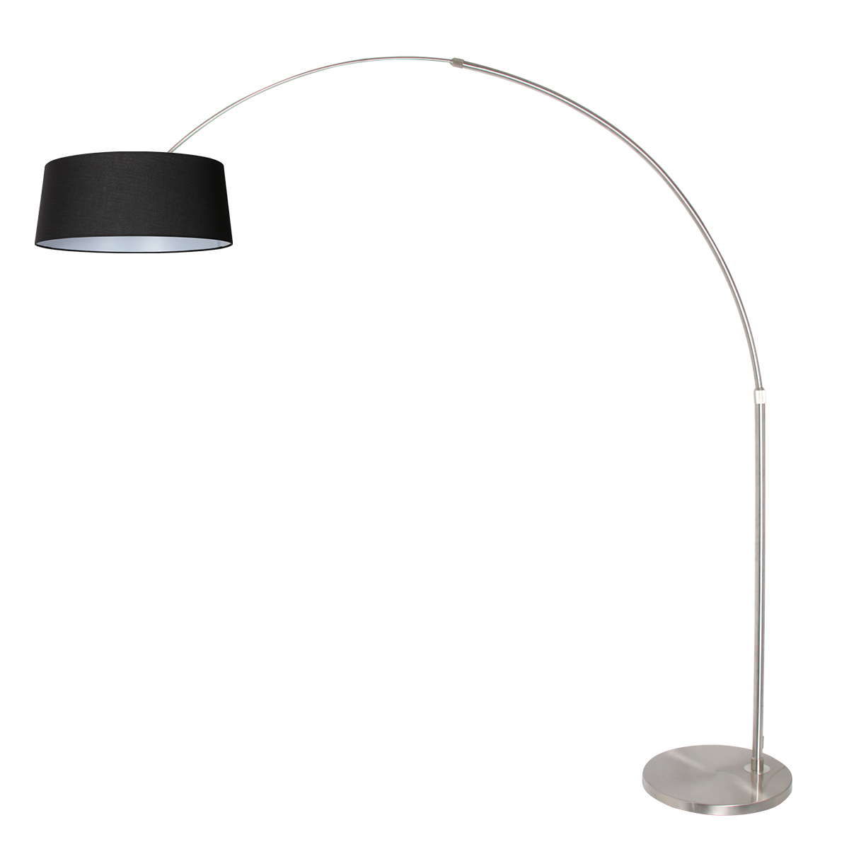 Staalkleurige booglamp met stijlvolle grijze linnen kap Steinhauer Sparkled Light