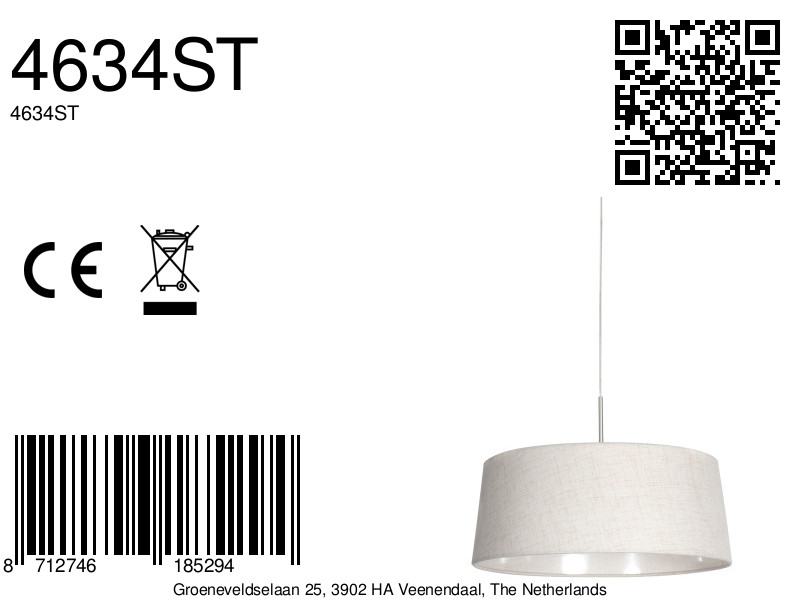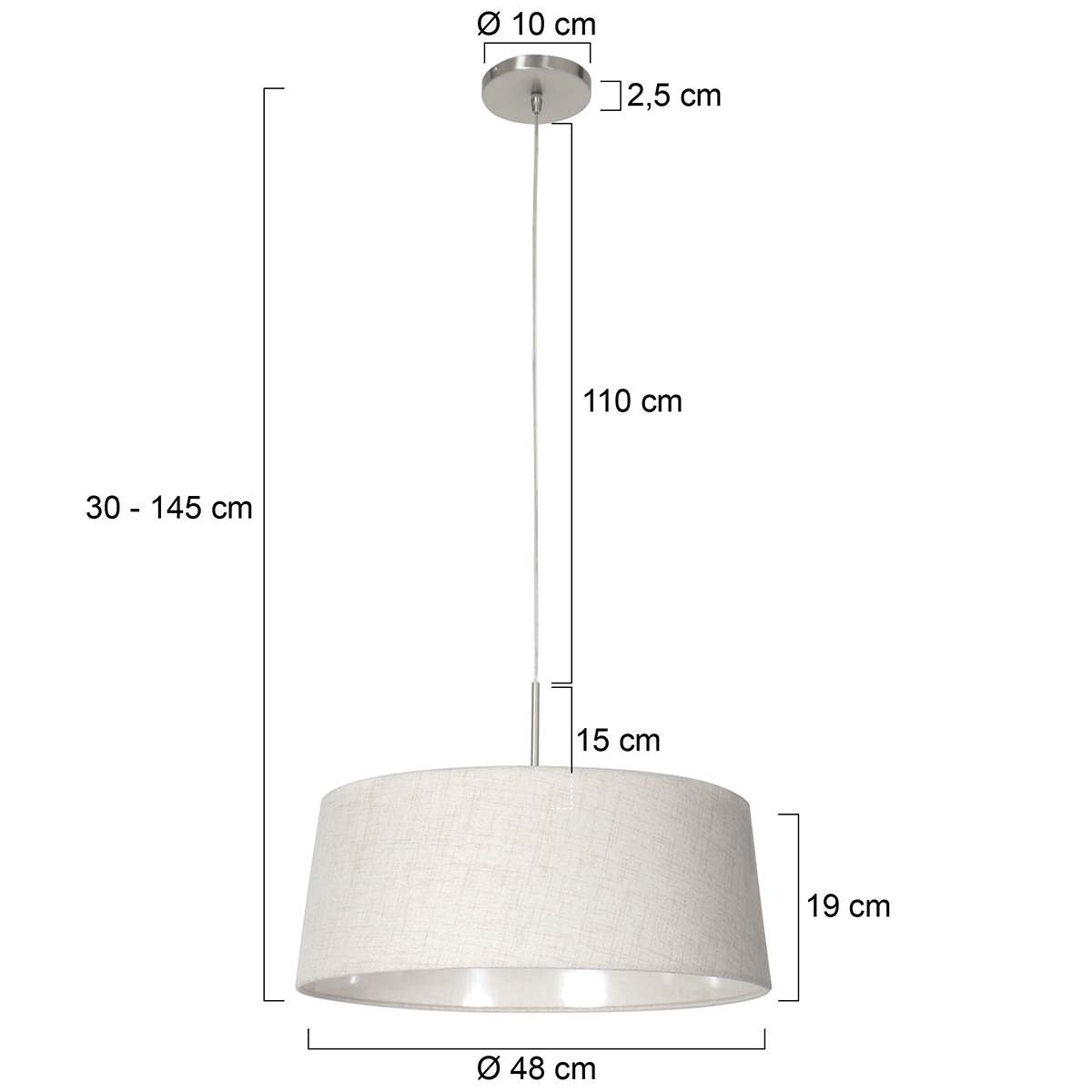 Met de crèmekleurige linnen kap ontstaat een elegante en zachte lichtverdeling. De lichte tint en subtiele structuur passen perfect in Scandinavische, landelijke en moderne interieurs. De witte binnenzijde zorgt voor een helder maar warm lichteffect boven de eettafel, keuken of zithoek.