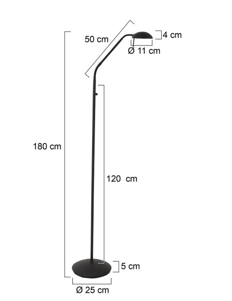 De trendy zwarte vloerlamp uit de Biron-serie combineert een modern design met optimaal gebruiksgemak. De flexibele leesarm met twee buigveren maakt het eenvoudig om de richting van het licht aan te passen, terwijl de geïntegreerde 8 watt LED-module warm wit licht geeft met een kleurtemperatuur van 2700 Kelvin en een lichtopbrengst van 650 lumen. Via de push-dimmer kan de lichtintensiteit eenvoudig worden ingesteld. Met een hoogte die geschikt is voor verschillende ruimtes en een snoer van 185 centimeter biedt deze lamp zowel stijl als functionaliteit.