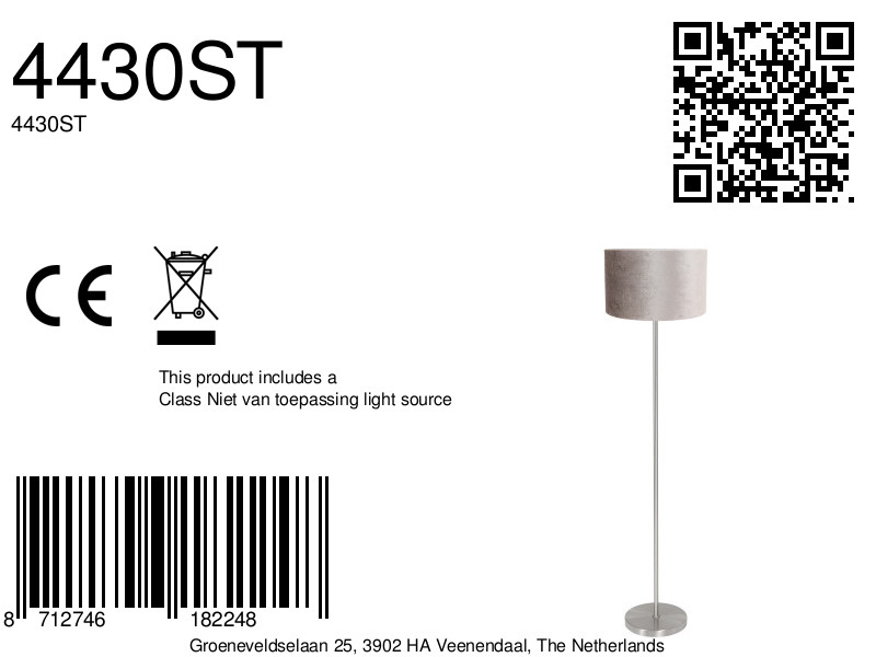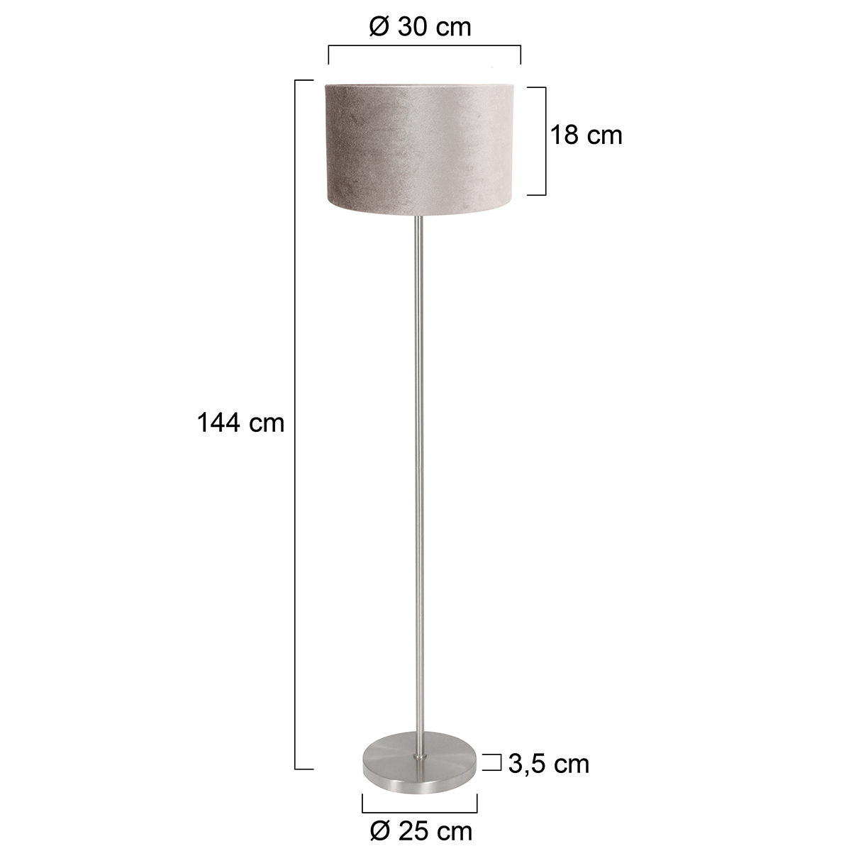 De Noor 4430ST is een moderne vloerlamp die geborsteld staal combineert met een elegante grijze velours kap. De kap van Ø30 cm zorgt voor een warme, diffuse lichtverspreiding die rust en sfeer brengt in de woonkamer, slaapkamer of studeerkamer. Het stalen armatuur geeft de lamp een strak en tijdloos silhouet dat moeiteloos past in vele interieurstijlen.