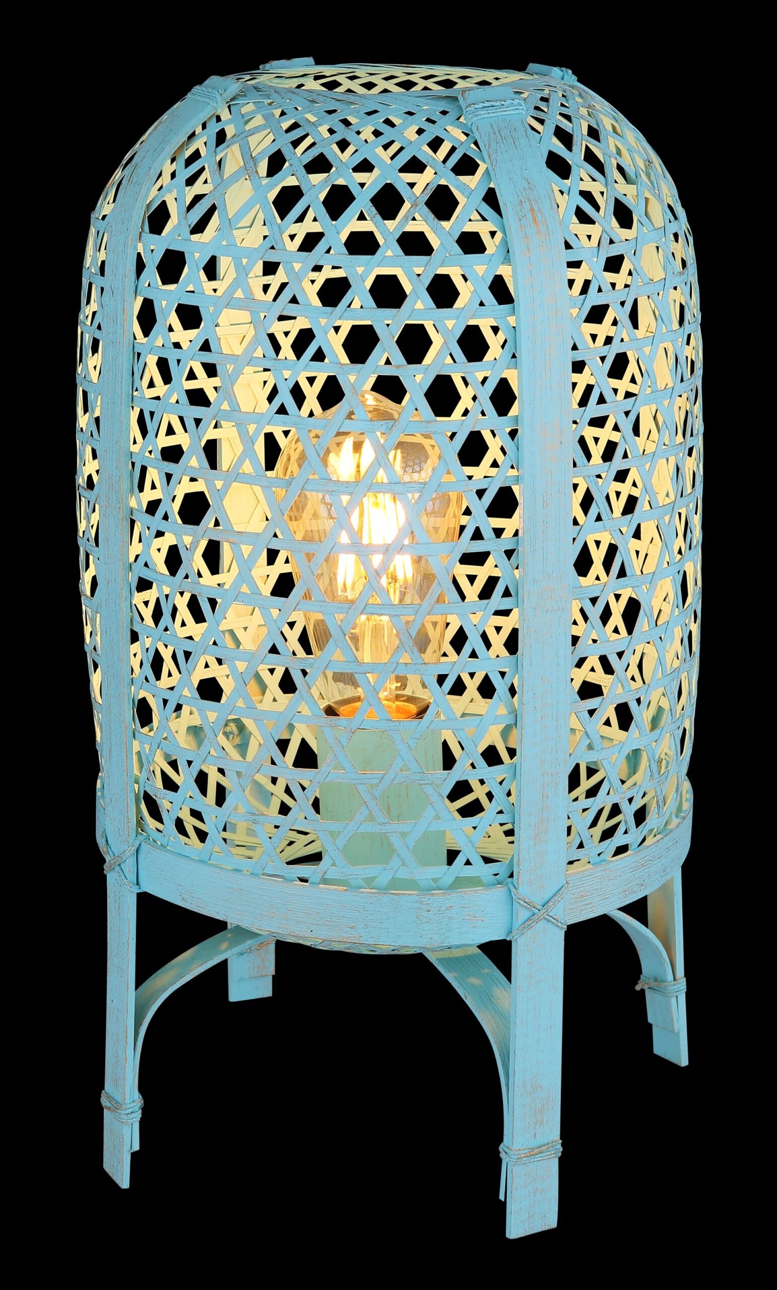 De Cairo tafellamp is een stijlvolle tafellamp die elegantie en charme uitstraalt. Met een rond design en een bolvormige kap van blauw gewassen bamboe wicker voegt deze lamp een unieke touch toe aan elke ruimte. Het lampenlichaam is gemaakt van antiek blauw metaal, wat bijdraagt aan de vintage uitstraling. De kap van blauw bamboe met een antieke look complementeert het ontwerp perfect. Met een diameter van 220 mm biedt deze tafellamp een warme en gezellige verlichting in uw huis.