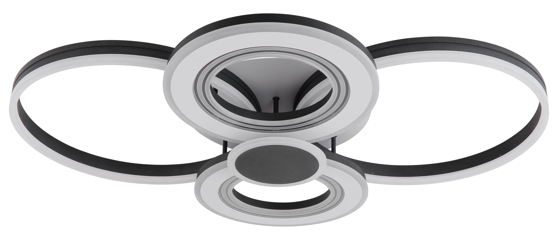 De lamp wordt geleverd met een bijpassende afstandsbediening, waarvoor 2 AAA-batterijen nodig zijn. Met afmetingen van 1060x800x160 mm en een elegante ringvorm met een diameter van 800 mm, is deze plafonnière waarlijk een blikvanger. Uitgerust met een krachtige 110W LED op 230V, levert de lichtbron een indrukwekkende helderheid tussen de 1333 en 12995 lumen, met een output variërend van 465 tot 3955 lumen. Daarnaast is de kleurtemperatuur instelbaar van een warme 2700K tot een koelere 6000K. Deze plafonnière is niet alleen functioneel, maar voegt ook een unieke charme toe aan elke ruimte, waardoor het een waardevolle aanvulling is voor jouw interieur.