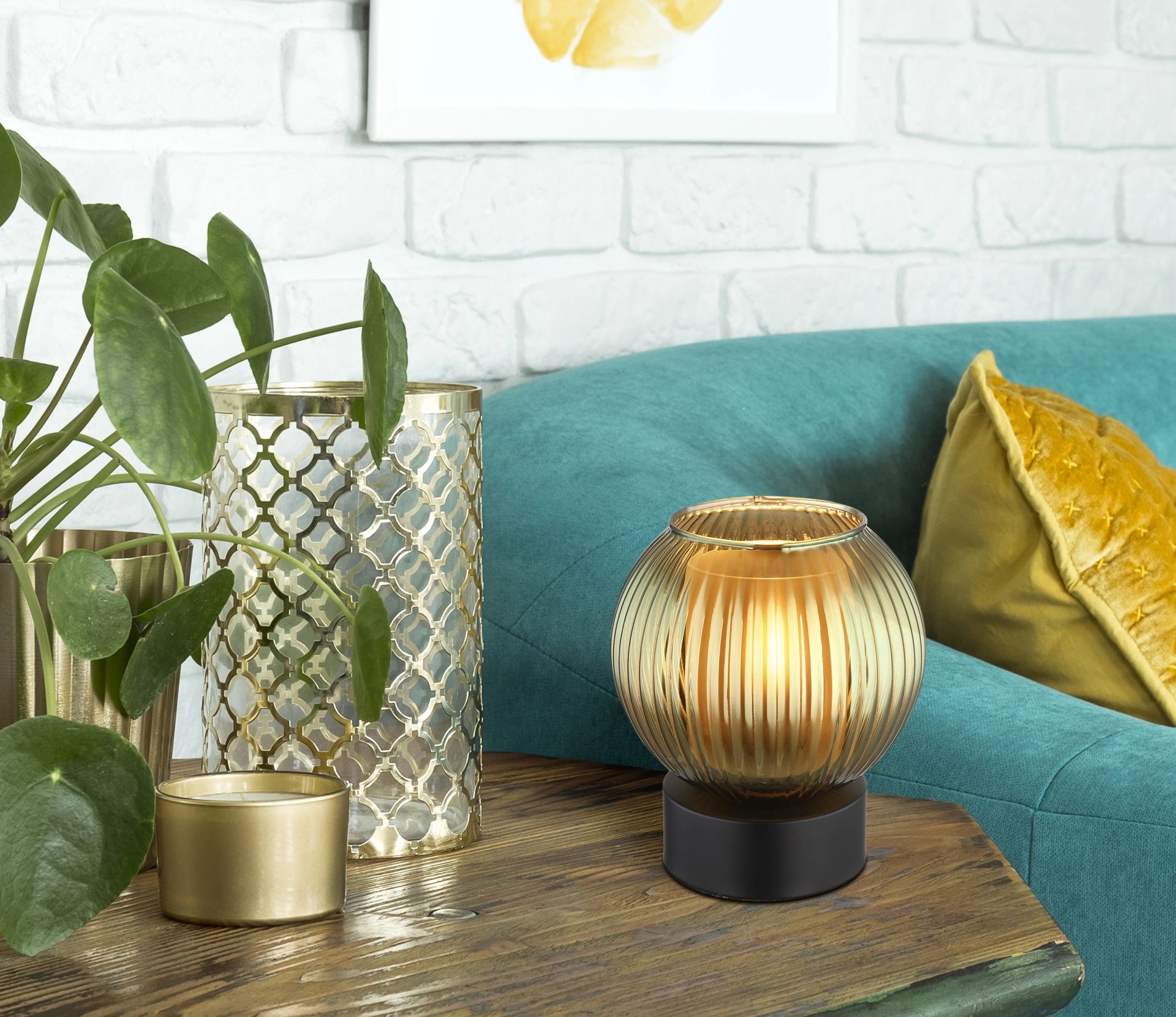 Stijlvolle ronde tafellamp met geribbelde bol Zumba