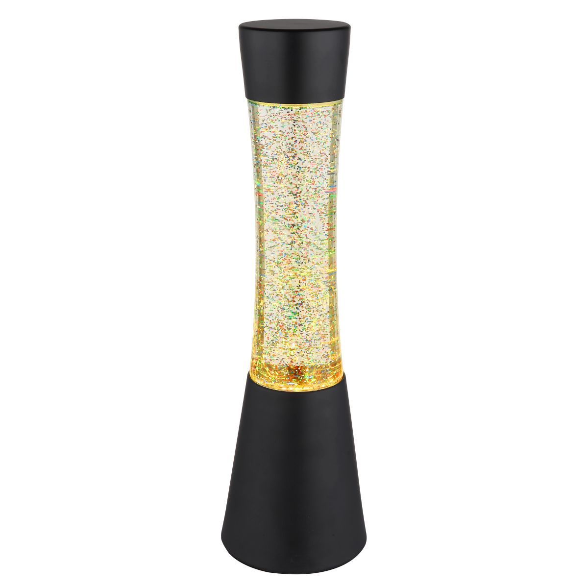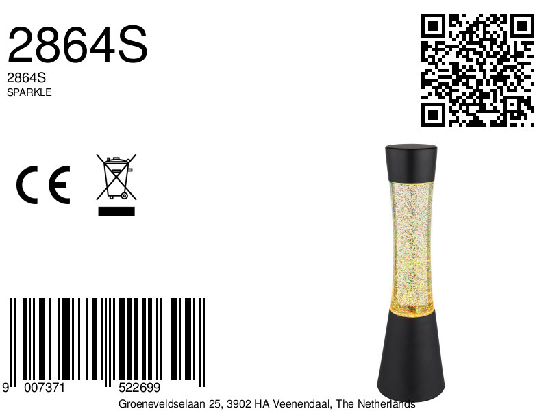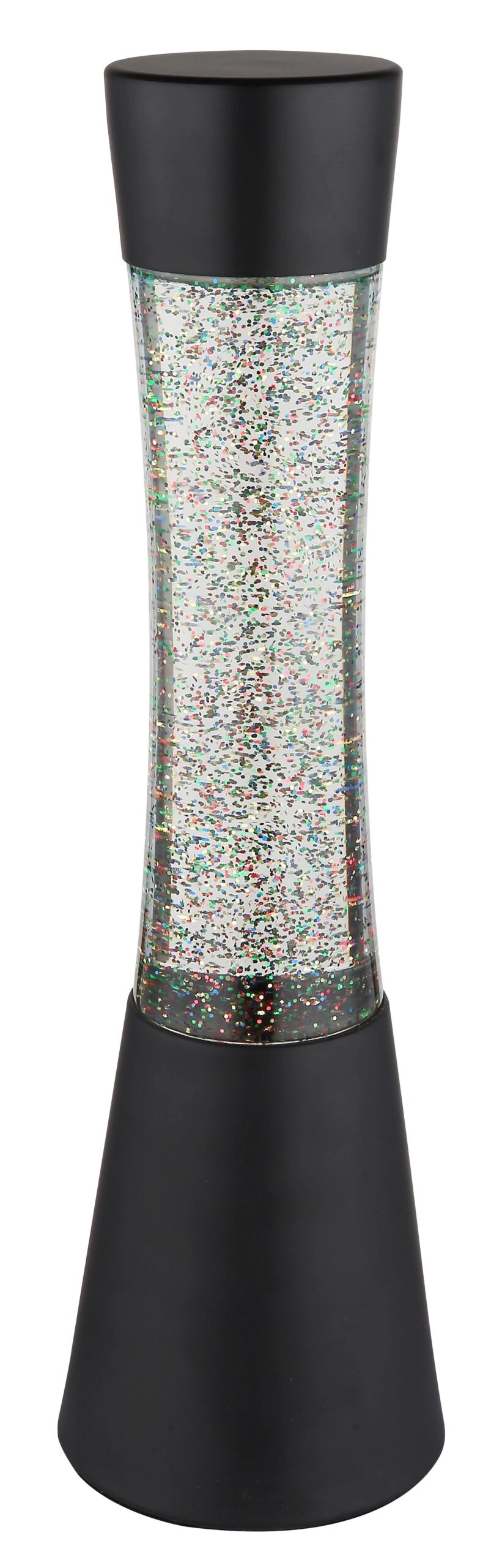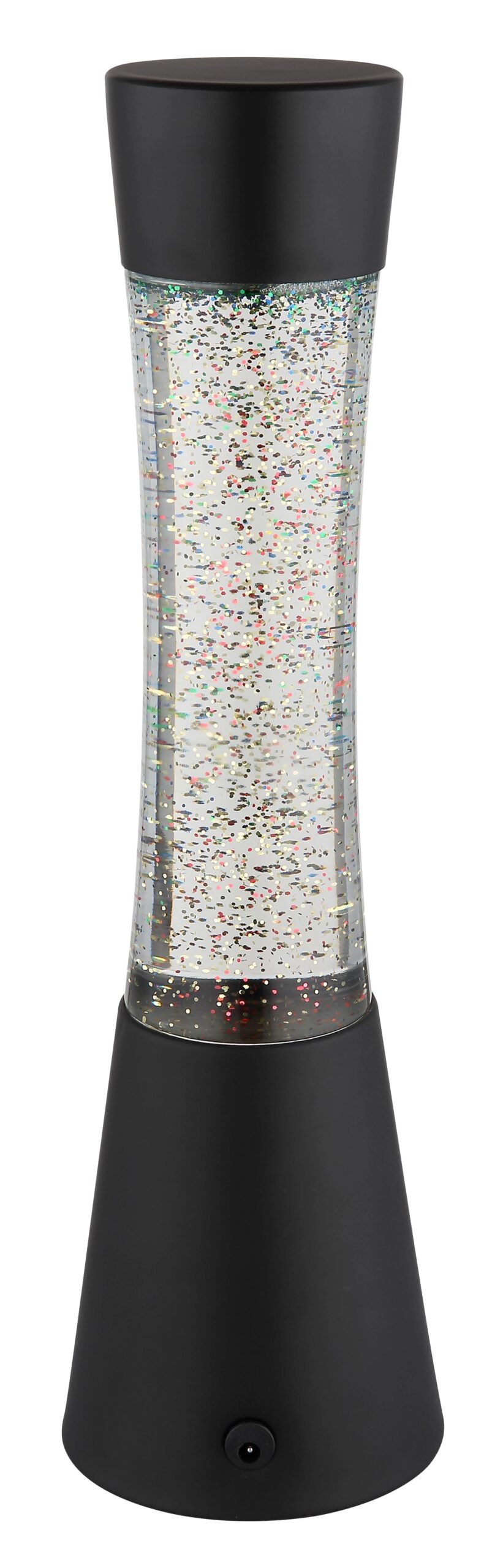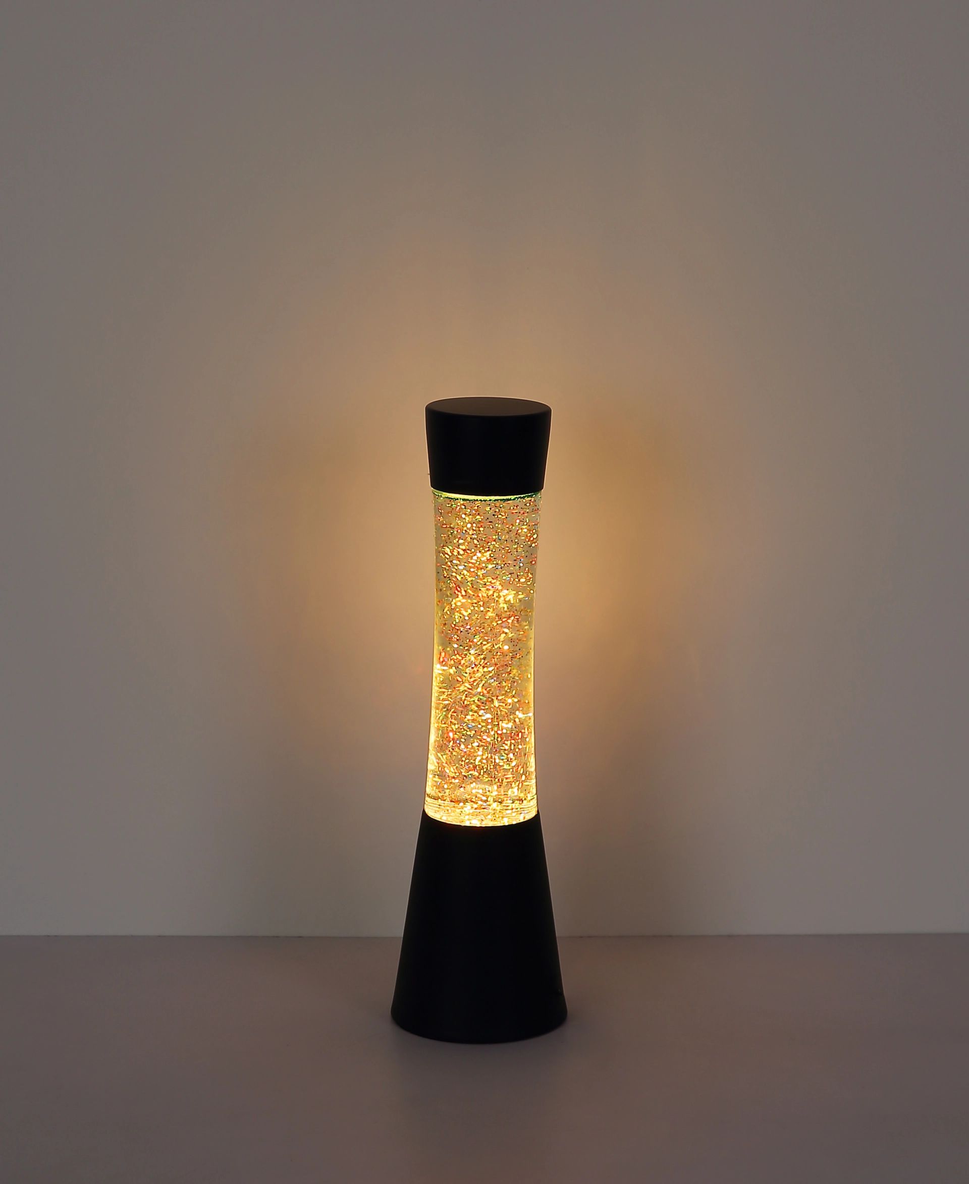 Een bijzonder kenmerk van de SPARKLE tafellamp is het geïntegreerde glitters effect. De heldere vloeistof, verrijkt met sprankelende glitters in regenboogkleuren, creëert een fascinerend lichtspel dat zeker de aandacht trekt. Deze lamp wordt geleverd met een LED-lamp en adapter, zodat je direct kunt genieten van de sfeervolle ambiance. Dit unieke ontwerp combineert functionaliteit met decoratieve verfijning op een perfecte manier, waardoor het een waardevolle aanvulling is voor je interieur.