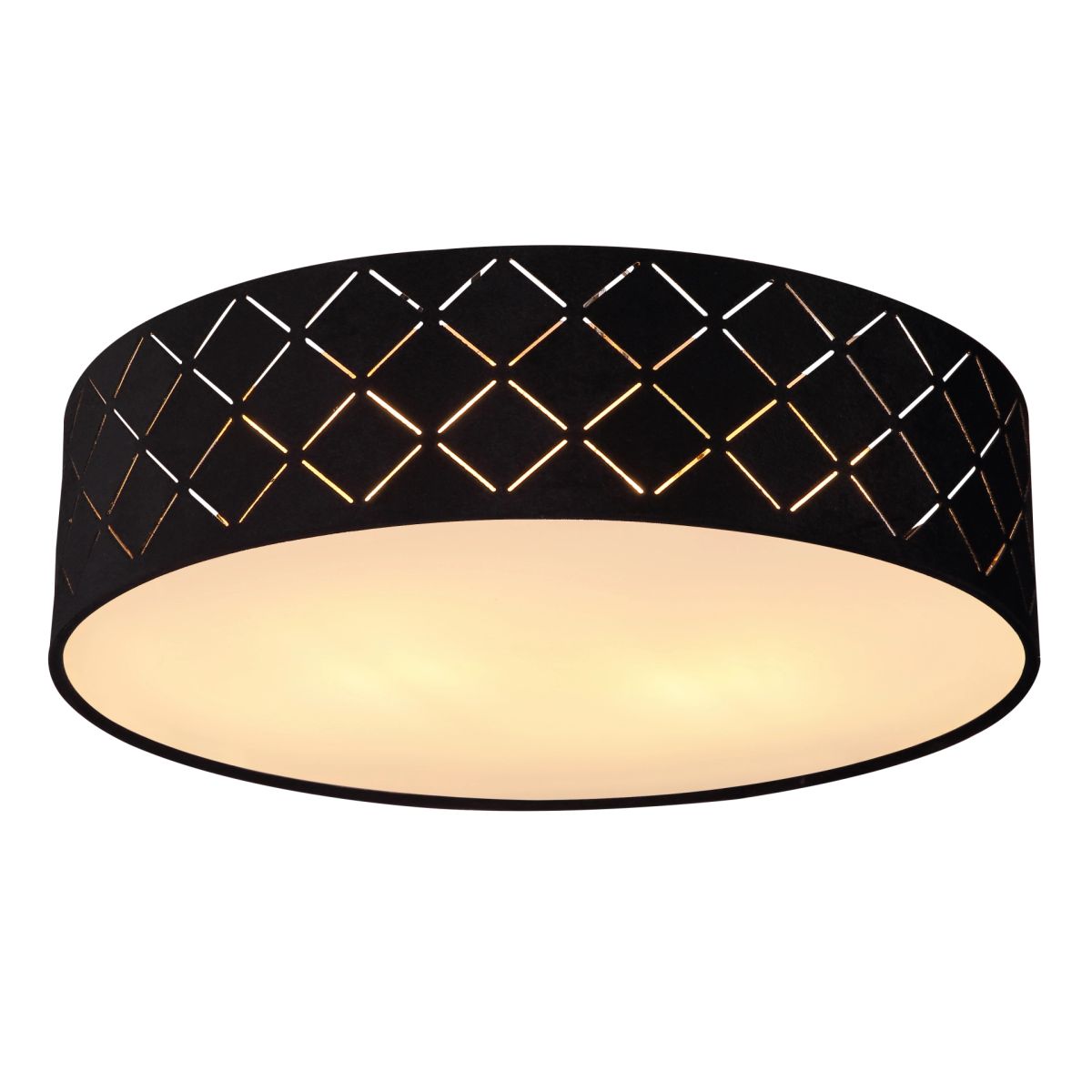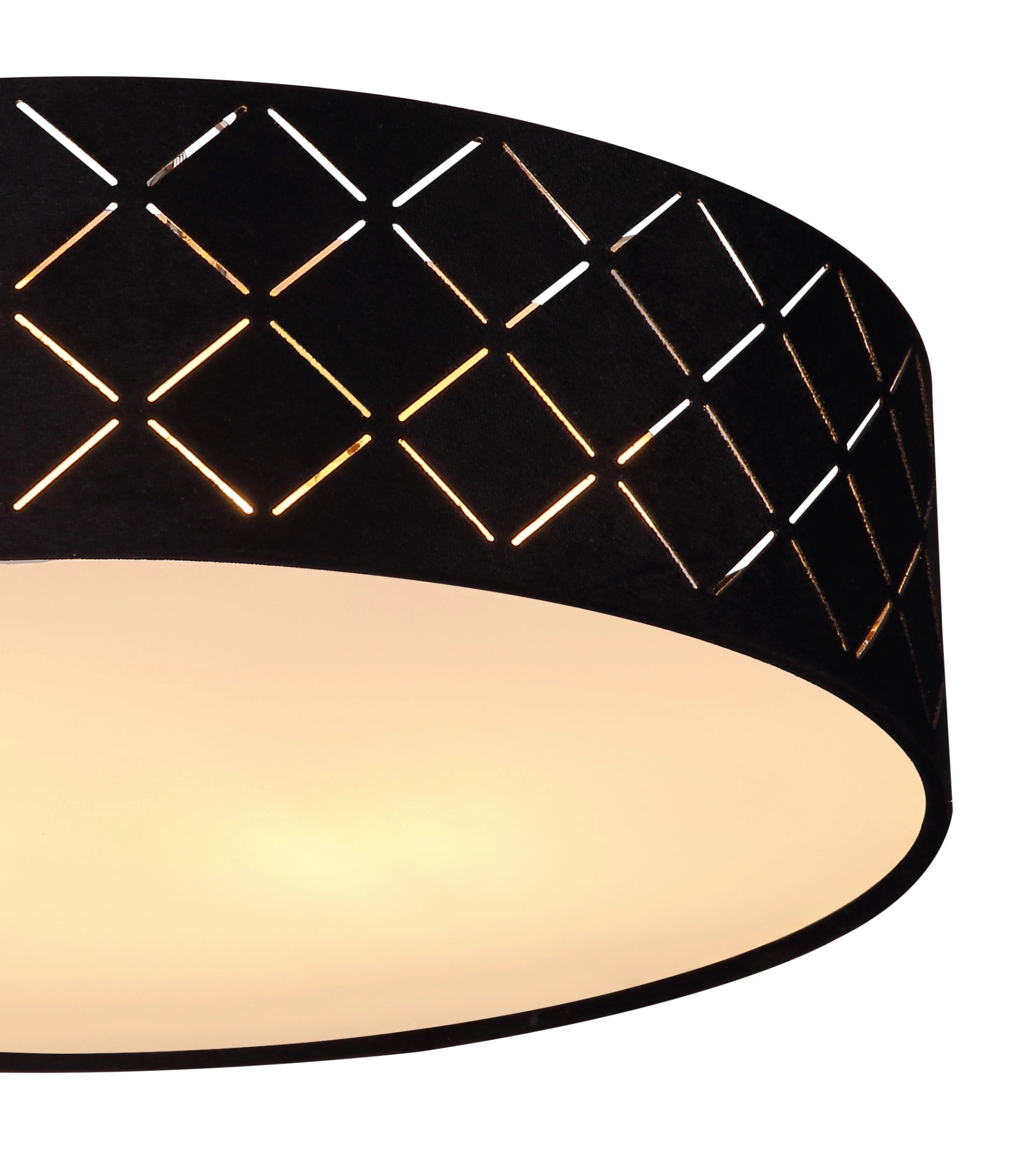 De VARIOS ronde plafondlamp met een diameter van 38 cm is een stijlvolle toevoeging aan ieder interieur. De lamp is uitgerust met een zwart textiel lampenkap die is versierd met decoratieve perforaties. Dit zorgt voor betoverende lichteffecten in uw ruimte. Aan de binnenzijde beschikt de lamp over een goudkleurige kunststof laag die het licht op indrukwekkende wijze weerkaatst. Daarnaast zorgt de satijn-finish op het kunststof glas voor een gelijkmatige lichtverdeling in de kamer.