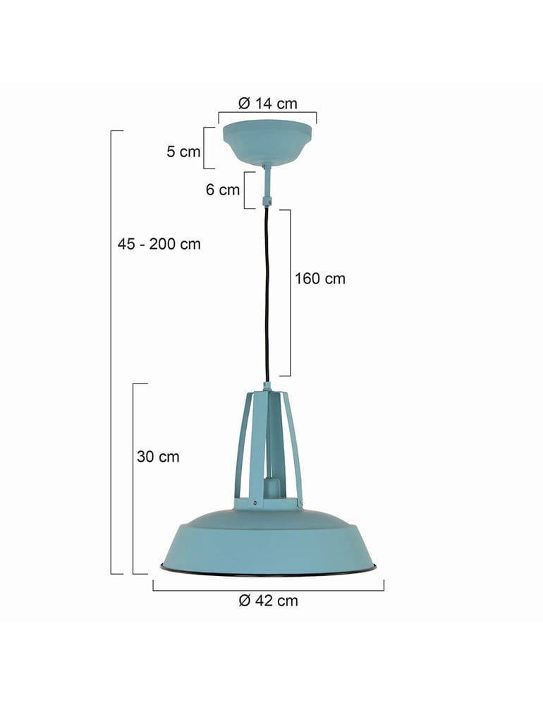 Ronde blauwe retro hanglamp metaal Mexlite Eden