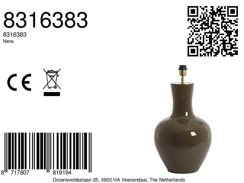 De Light & Living tafellamp Nana in glanzend donkerbruin combineert warme tinten met een stijlvolle uitstraling. Met een diameter van 33 cm en een hoogte van 51 cm is dit model compact maar toch opvallend, perfect voor een dressoir of nachtkastje. Het stevige metalen ontwerp met glanzende afwerking straalt kwaliteit uit en past moeiteloos in zowel moderne als klassieke interieurs. De lamp is uitgerust met een E27 fitting en wordt geleverd zonder lichtbron, zodat je zelf een geschikte variant kunt kiezen. Bediening gaat via een snoerschakelaar en afhankelijk van de gekozen lichtbron is de lamp dimbaar. Dankzij de IP20 klasse is deze lamp enkel voor binnengebruik geschikt.