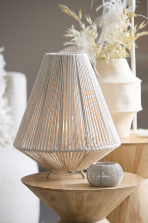 Verken de charme van deze beige tafellamp van het merk Light & Living, die perfect past in een bohemian interieur. Met een hoogte van 40 cm, een lengte van 35 cm en een breedte van 35 cm, is deze lamp veelzijdig en geschikt voor verschillende ruimtes, zoals de eetkamer, keuken, slaapkamer en woonkamer. Het hoogwaardige metaal en het unieke touwdesign dragen bij aan de sfeervolle uitstraling. De lamp is gemakkelijk te bedienen met een snoerschakelaar en wordt geleverd met een snoer. Let op, de lamp is exclusief lichtbron, waardoor je zelf de mogelijkheid hebt om een energiezuinige lichtbron te kiezen die bij jouw stijl past. Deze lamp behoort tot de Felida-collectie en is een ware blikvanger in jouw woning.