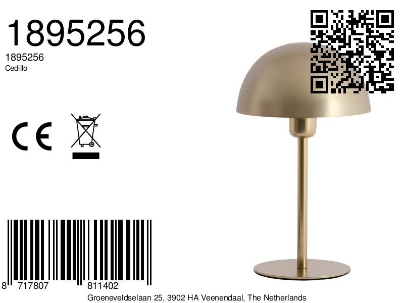 De Cedillo tafellamp in mat licht goud straalt elegantie en luxe uit. Het metallic oppervlak heeft een subtiele glans die het licht prachtig reflecteert, waardoor de lamp meteen een chique accent vormt in je interieur. Zet hem op een nachtkastje of bijzettafel en geniet van de retro uitstraling die warmte en stijl toevoegt.De lamp is 34 cm hoog en heeft een diameter van 20 cm. Hij is gemaakt van metaal en voorzien van een E27 fitting. De lichtbron wordt niet meegeleverd, zodat je zelf de gewenste sfeer kunt kiezen. Bedienbaar via de snoerschakelaar en dimbaar in combinatie met een geschikte lichtbron. Door de IP20 beveiligingsklasse geschikt voor gebruik binnenshuis. Inclusief snoer en geleverd met 2 jaar garantie.