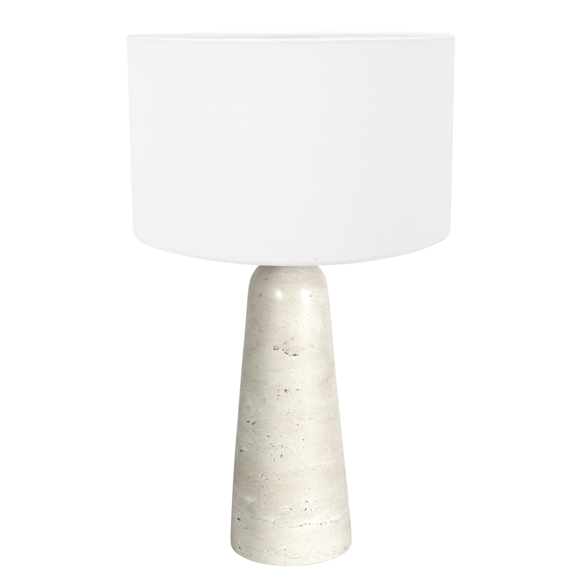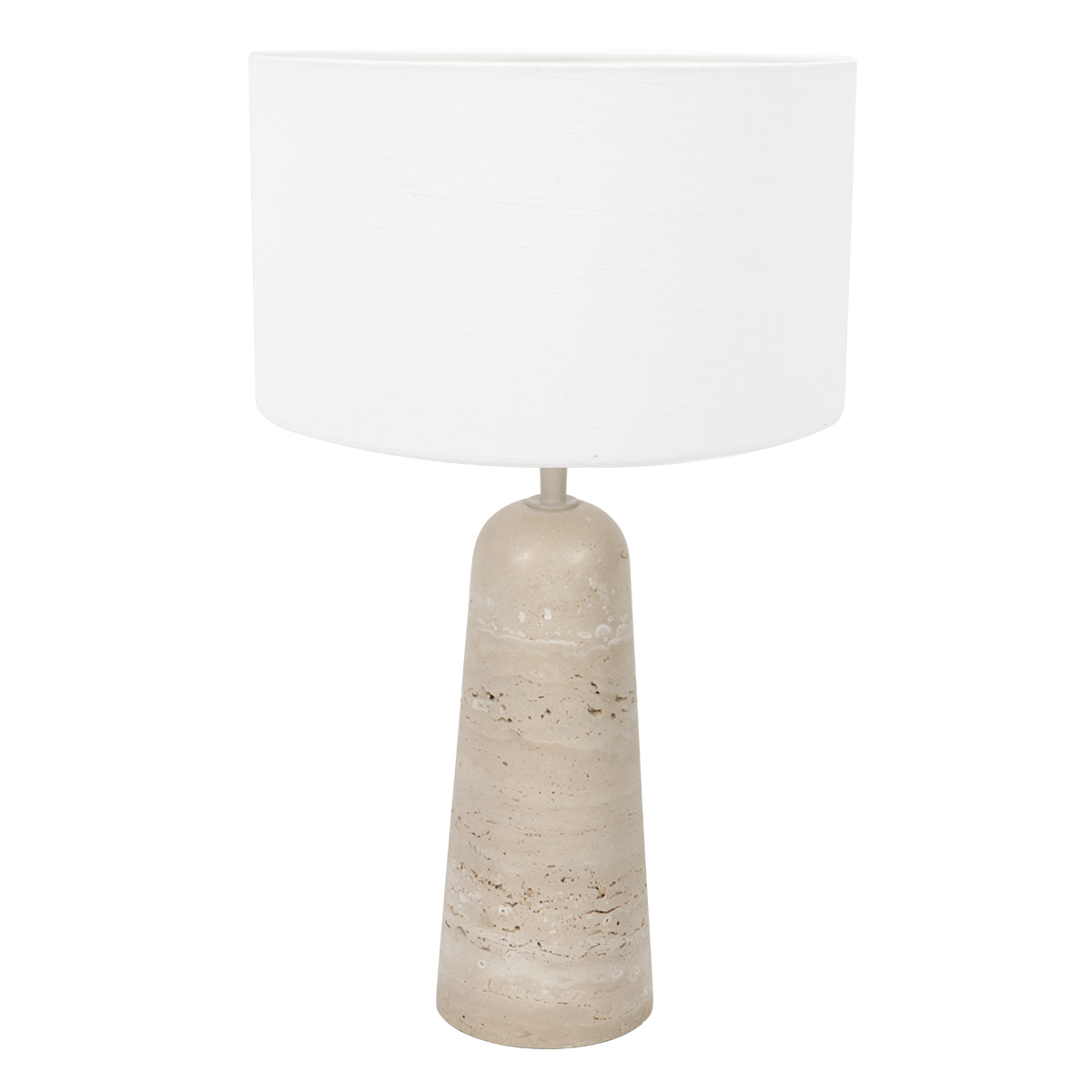 Tafellamp met witte linnen kap en travertin voet Anne Light Travino