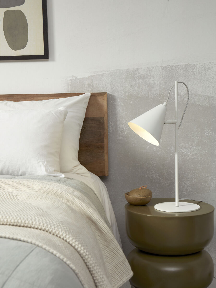 Tafellamp metaal retro wit van It’s About RoMi Lisbon. Een stijlvolle keuze voor eetkamer, kantoor, slaapkamer of woonkamer. Geschikt voor E14 fitting en stofdicht (IP20). Exclusief lichtbron. Voor een elegante en tijdloze retro look.