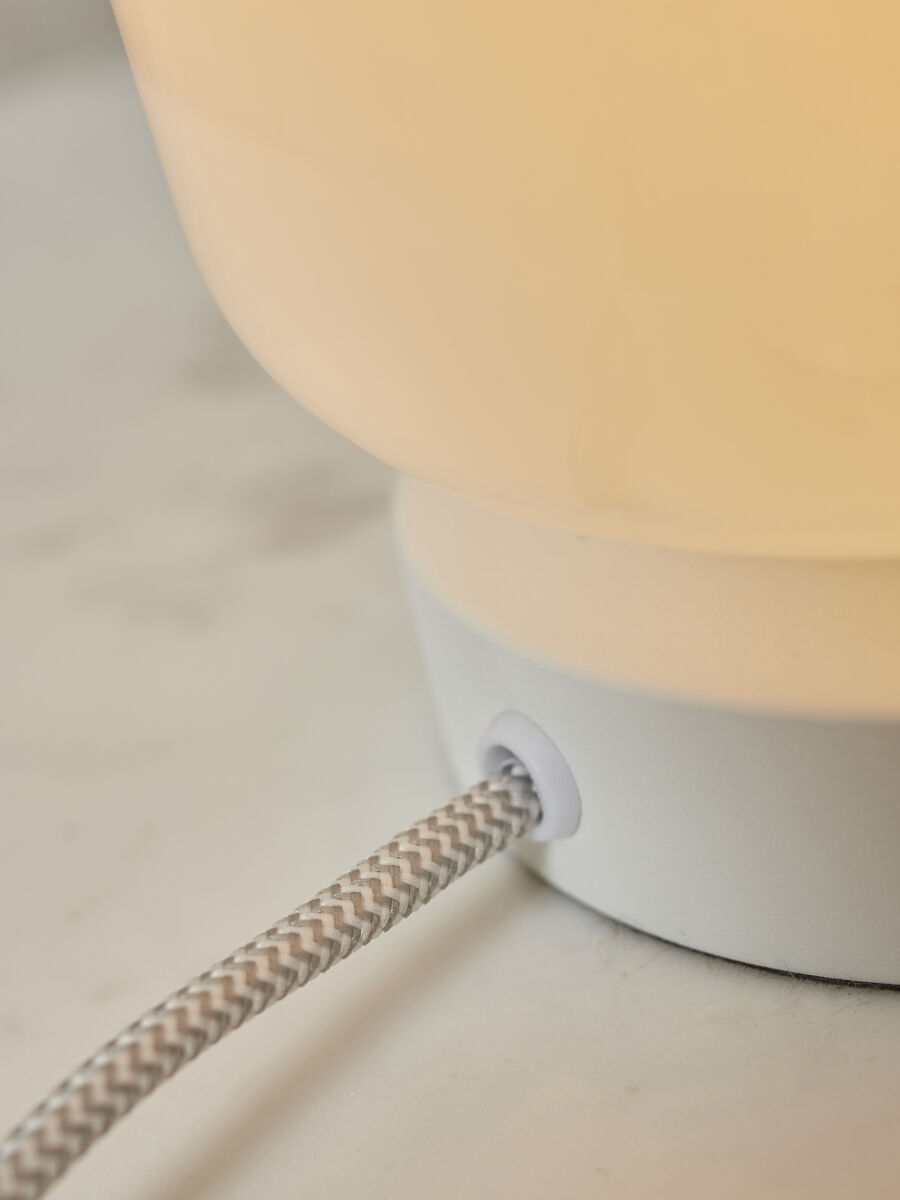 De witte tafellamp uit de Verona-serie biedt een frisse uitstraling met zijn klassieke ontwerp. Het witte glas en de metalen basis maken het een ideale keuze voor een moderne slaapkamer of woonkamer. IP20 en E27 fitting maken het compleet.