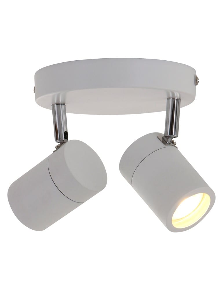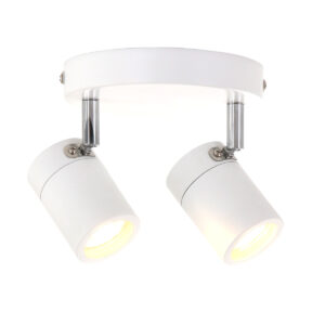 De moderne witte 2-lichts spot uit de Upround-serie is voorzien van twee GU10-fittingen en wordt geleverd met 4,9 watt lichtbronnen met dim-to-warm functie. Dit betekent dat het licht verandert van fris wit bij maximale helderheid naar warm geel bij dimmen. De lamp is geschikt voor gebruik met een externe dimmer (niet meegeleverd). De kleurtemperatuur varieert van 2200 tot 2700 Kelvin en de totale lichtopbrengst bedraagt 2 x 480 lumen. Met een maximale diepte van 15 cm en een IP44-classificatie is deze spot geschikt voor gebruik in vochtige ruimtes zoals de badkamer (zone 2).