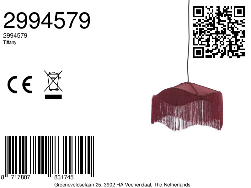 De Light & Living hanglamp Tiffany Velvet (Ø40 x H.26 cm) in bordeaux velvet is glamour met een knipoog. Op de foto zie je de typische fluweelglans: rijk van kleur, zacht van textuur en met een subtiele schittering wanneer het licht erover strijkt. De lage drumvorm houdt het geheel elegant en modern, terwijl de dieprode tint de ruimte ’s avonds een intieme, luxe gloed geeft. Deze hanglamp uit de Tiffany-serie heeft een E27-fitting, wordt zonder lichtbron geleverd en is dimbaar met externe dimmer en dimbare lichtbron. IP20, dus voor binnen. Dé eyecatcher boven een ronde eettafel of in een cosy loungehoek.