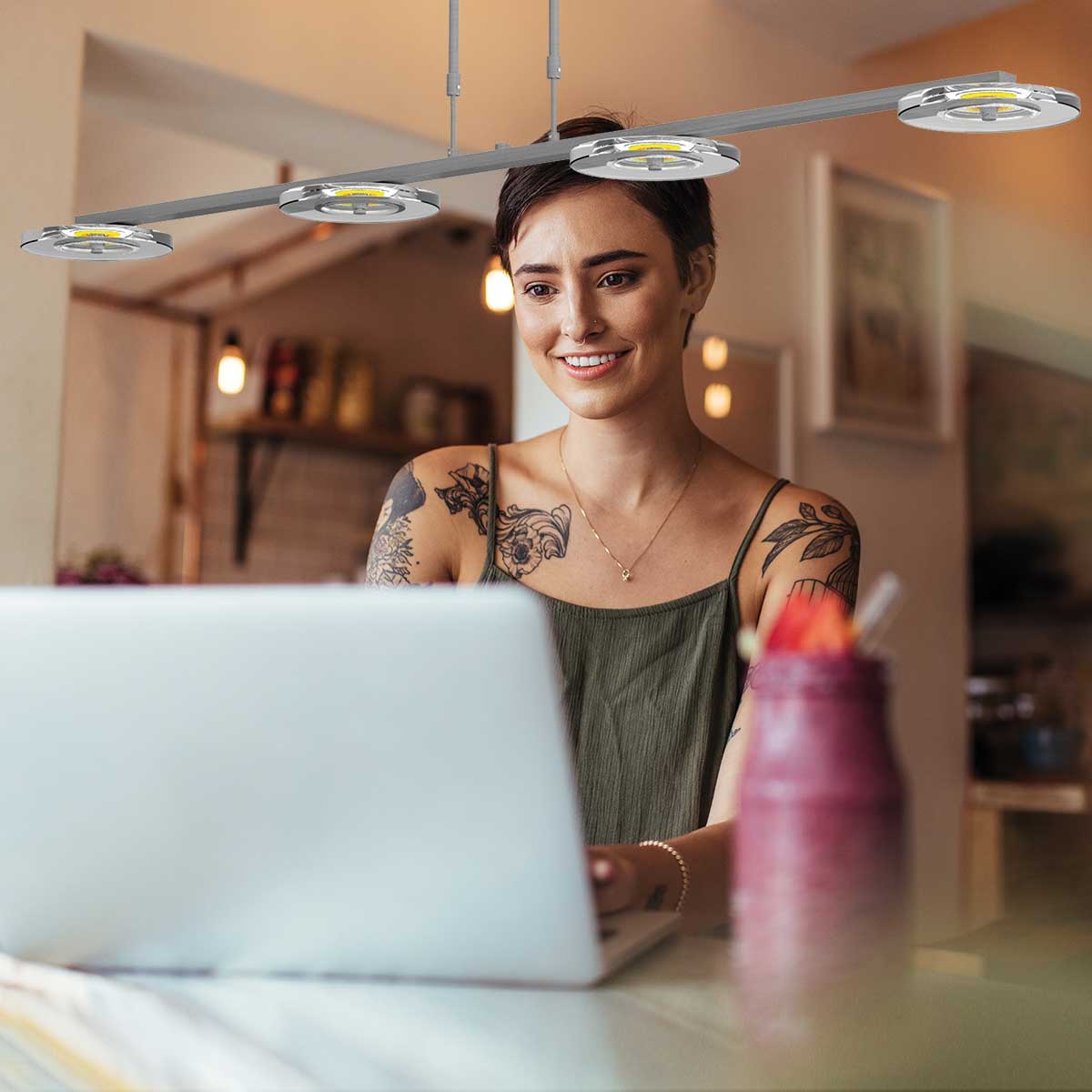 Met een breedte van 120 cm is deze lamp ideaal voor tafels tot 200 cm breed. De verstelbare hoogte en ingebouwde pushdimmer maken het mogelijk om de verlichting naar wens aan te passen. Met een kleurtemperatuur van 2700 Kelvin en een lichtopbrengst van 3000 lumen biedt deze hanglamp een perfecte balans tussen sfeer en functionaliteit.