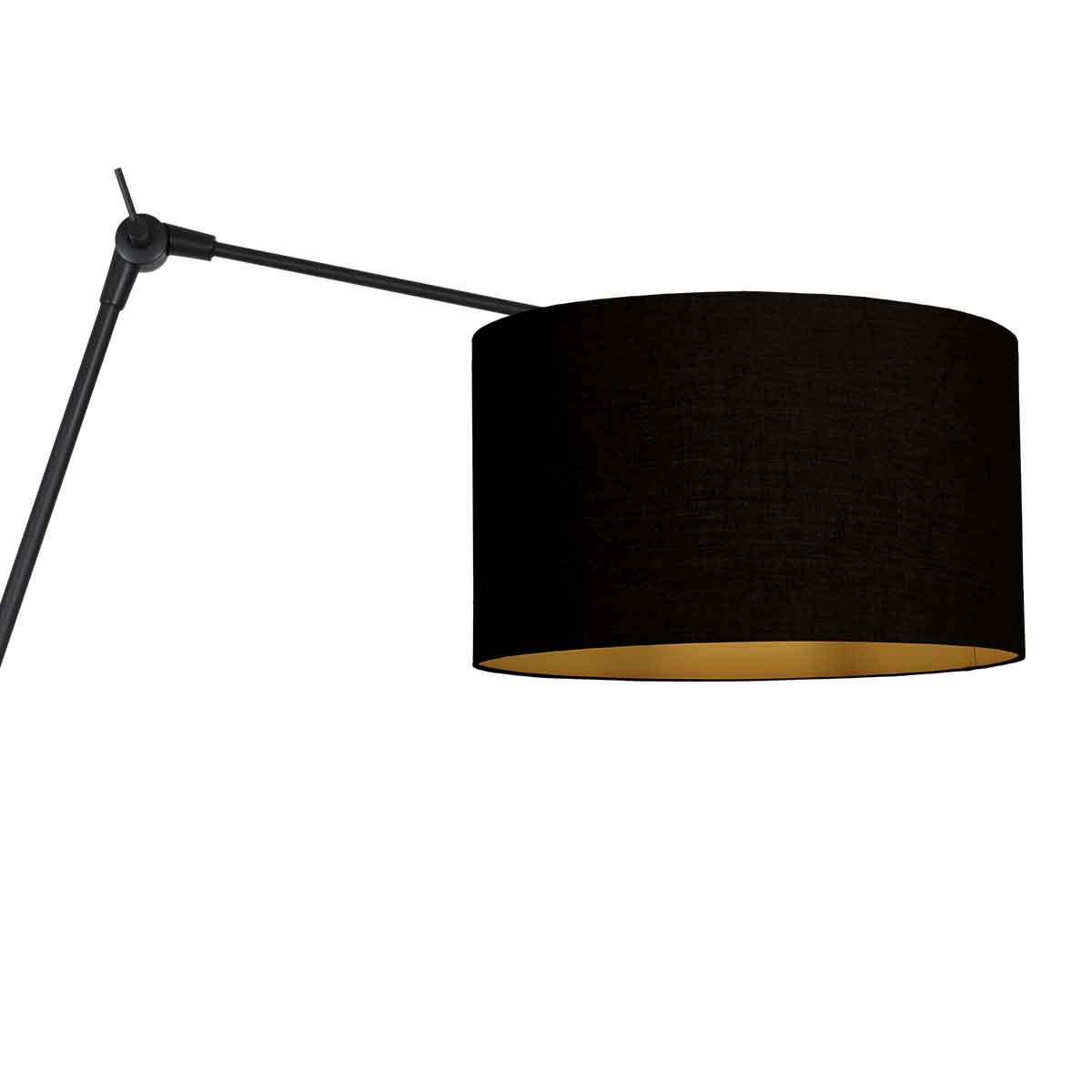 Deze wandlamp wordt geleverd met een zwart linnen kap met goudkleurige binnenkant, wat een warme en elegante sfeer creëert. De ingebouwde dimmer op de wandplaat en het snoer met stekker zorgen voor extra gebruiksgemak. Dankzij de moderne uitstraling en hoogwaardige materialen past deze wandlamp perfect in eigentijdse interieurs.