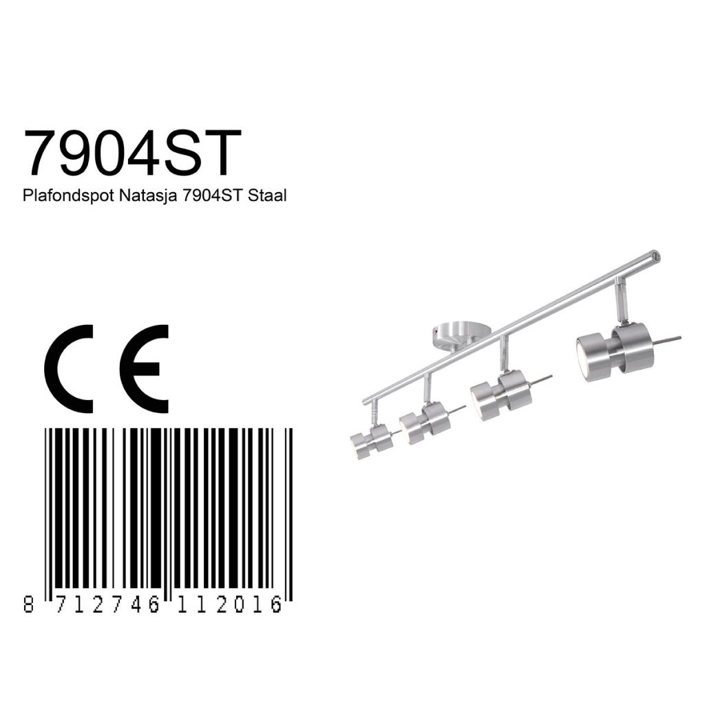 De staalkleurige 4-lichts plafondspot Natasja van Steinhauer biedt kracht en flexibiliteit in één modern ontwerp. De verstelbare spotkoppen maken het mogelijk om meerdere hoeken van de ruimte te verlichten. Inclusief GU10 lichtbronnen met dim-to-warm functie, een maximale lichtopbrengst van 480 lumen per spot en een breedte van 90 cm voor optimale verlichting.