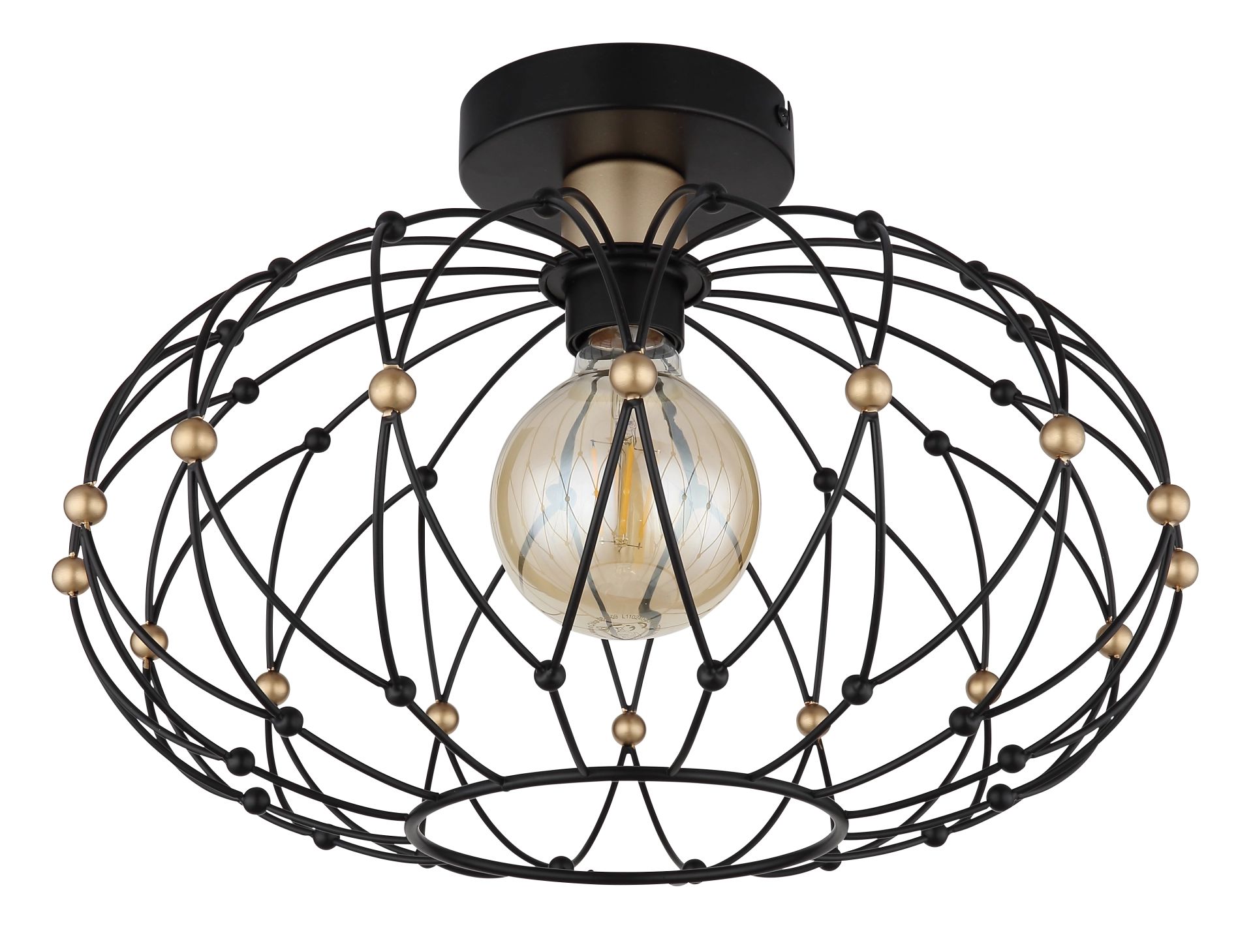 De GRAYS plafondlamp in vintage stijl voegt een elegante toets toe aan uw interieur. Met zijn ronde metalen gaas in mat zwart, biedt deze lamp een hedendaags en stijlvol uiterlijk. De gouden decoratieve bollen geven het ontwerp een verfijnde uitstraling. Dit armatuur, vervaardigd uit mat zwart metaal, vormt een perfecte combinatie met de chique kap en zorgt voor een luxe ambiance in elke ruimte.