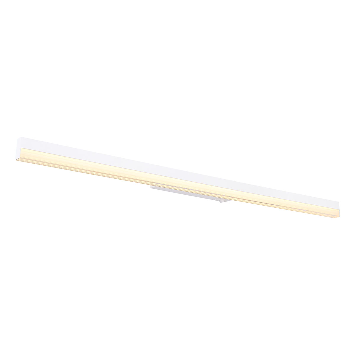 Betreed de moderne wereld van verlichting met deze strak vormgegeven wandlamp, in elkaar gezet van matte witte metalen en aluminium delen met een opaal acryl afwerking. Met zijn imposante formaat van 800 mm bij 40 mm bij 65 mm, voegt het een eigentijdse toets toe aan elk interieur. De ingebouwde LED-lamp van 18 W, met een spanning van 230 V, verspreidt een stoere 2200 lm-bronhelderheid en een uitvoer van 1300 lm, wat resulteert in een warme, uitnodigende lichttemperatuur van 3000 of 6000K. Met instelbare helderheid via een tuimel- en tikschakelaar en de mogelijkheid om de kleurtemperatuur vast zetten, kan de lamp worden aangepast aan elke sfeer en setting, en is het vooral geschikt voor ruimtes met lage plafonds.