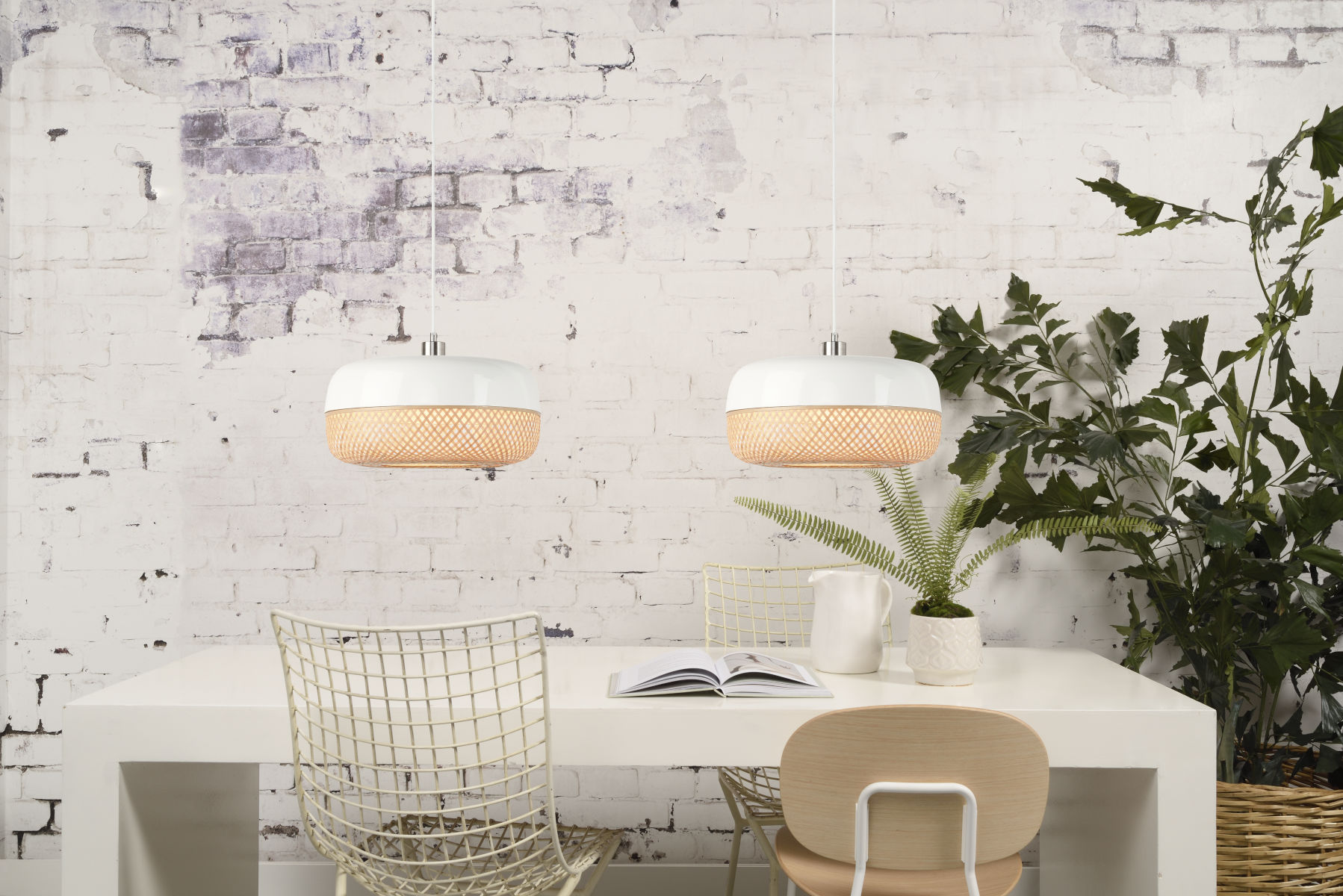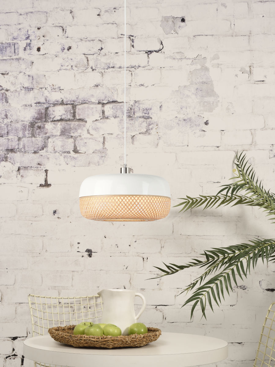 Witte hanglamp plat metaal/bamboe GOOD&MOJO Mekong